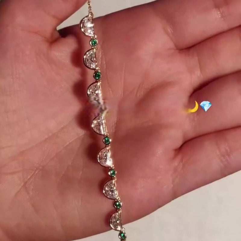 Crescent moon design: Unique lunar-inspired links symbolizing femininity and mystery.