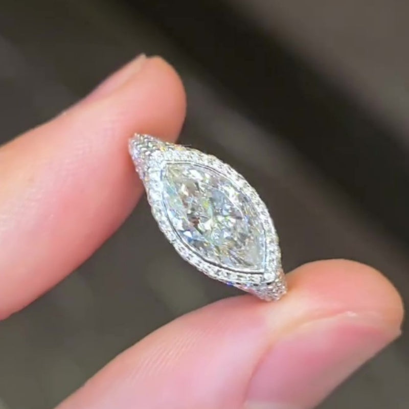 Brilliant Marquise Cut Center Stone – elongated shape for a luxurious and eye-catching sparkle.