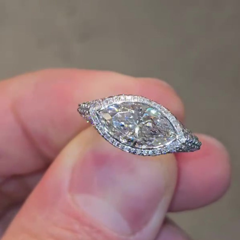 Jzora handmade horizontally set marquise cut full-pavè sterling silver pinky ring