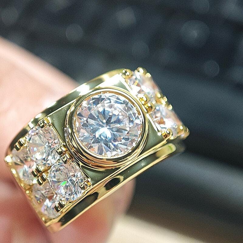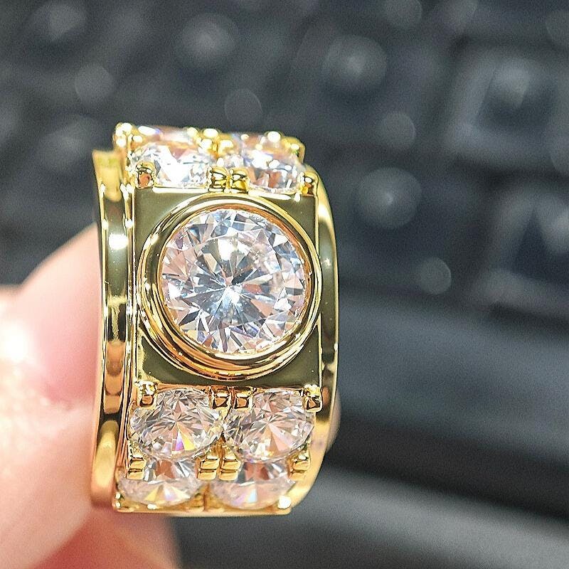Jzora handmade imperial round cut pavé statement men's ring