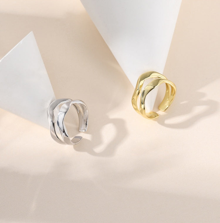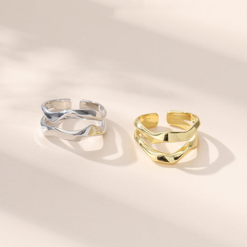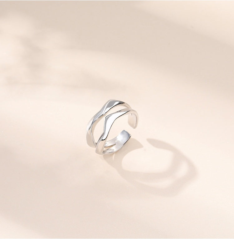 Jzora handmade irregular double layer design sterling silver adjustable ring