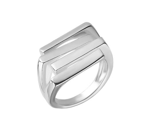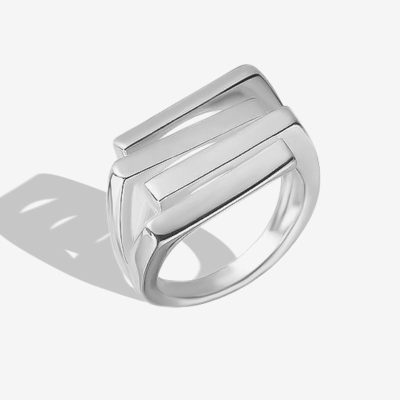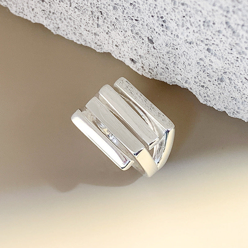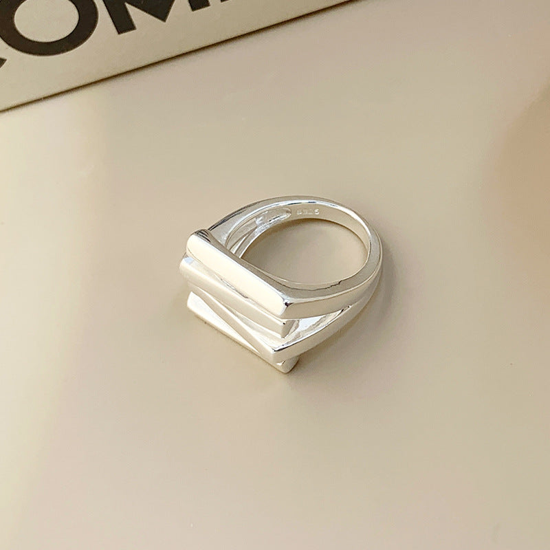 Jzora handmade irregular four-layer stacking sterling silver adjustable ring