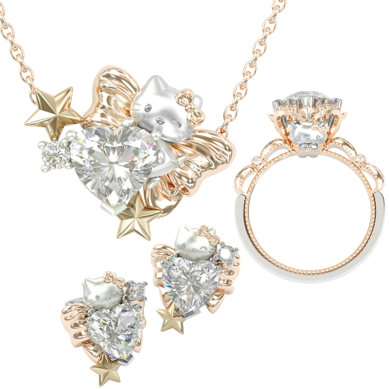 Jzora handmade lovely hello kitty sterling silver jewelry set