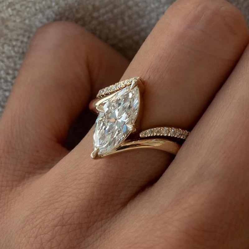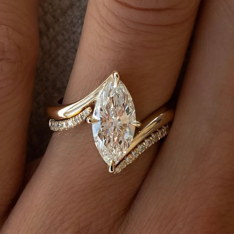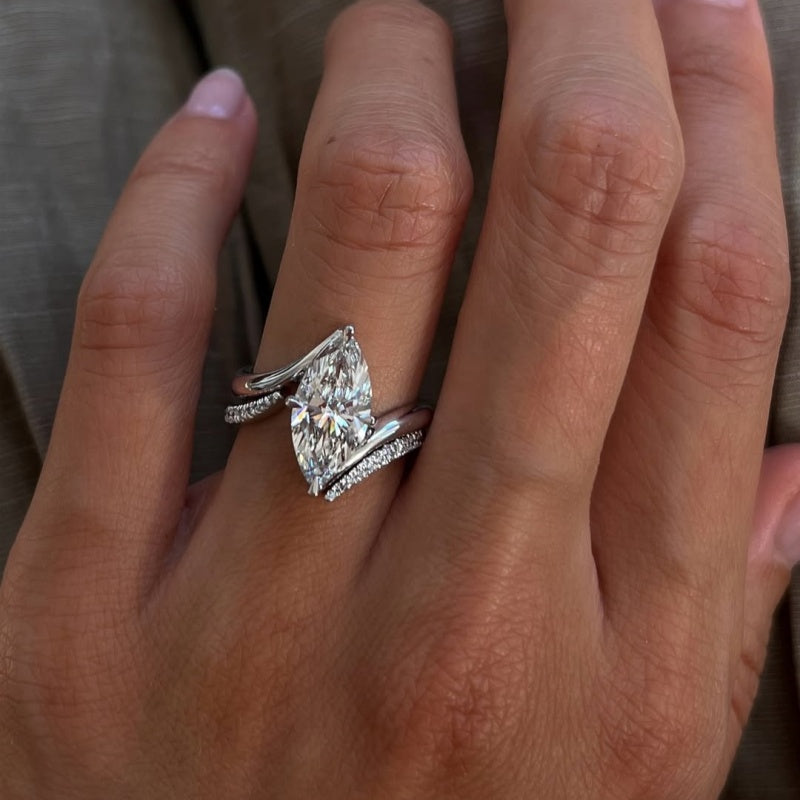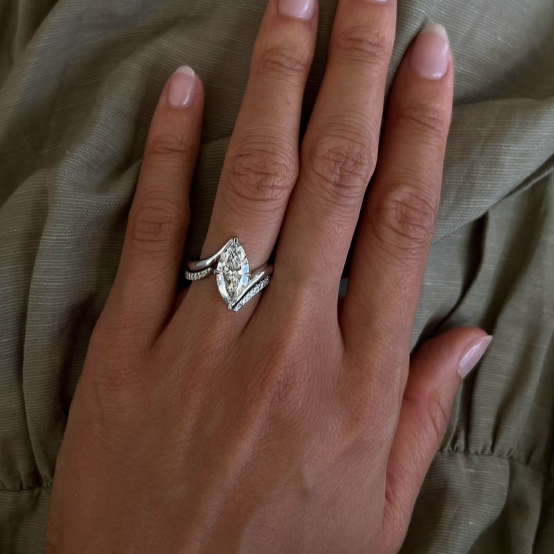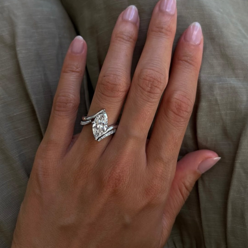 J’adore! The marquise cut makes the ring look so sophisticated, and the swirling silver band adds a romantic touch.