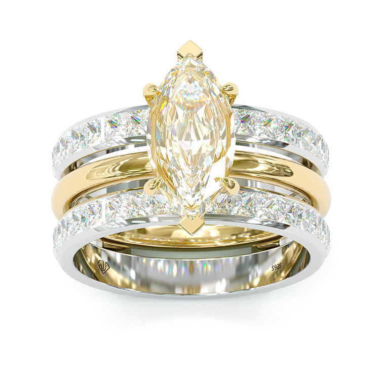 Jzora handmade marquise cut two tone anniversary ring wedding ring silver bridal set