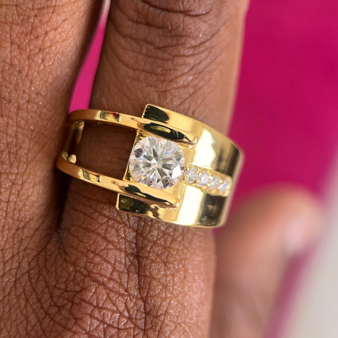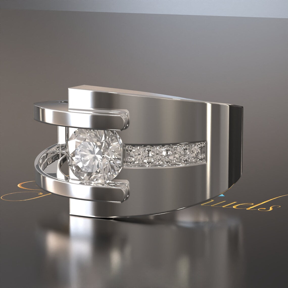 Jzora handmade modern glamour 1.2ct round cut solid men's ring