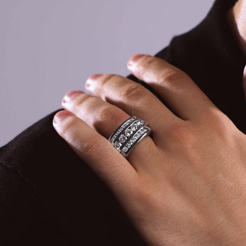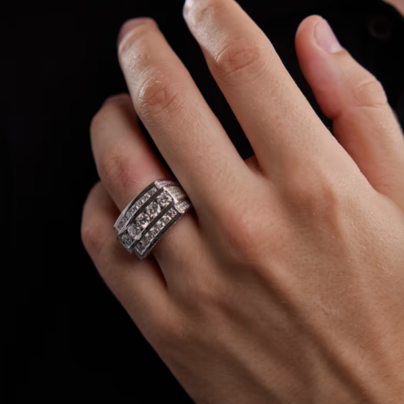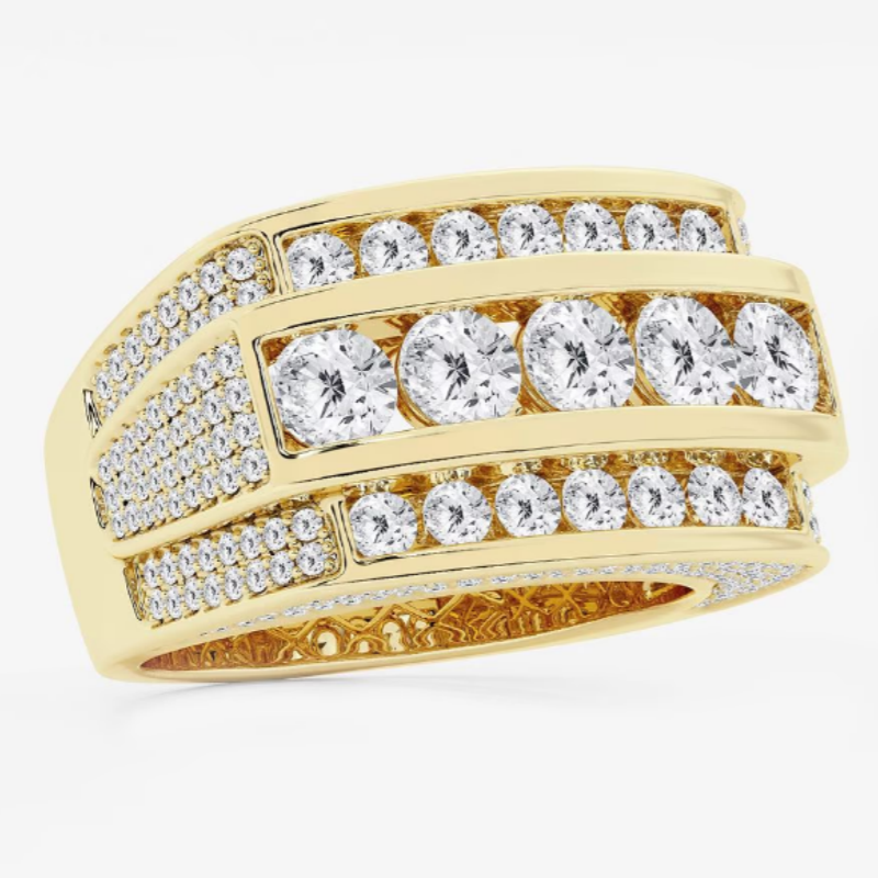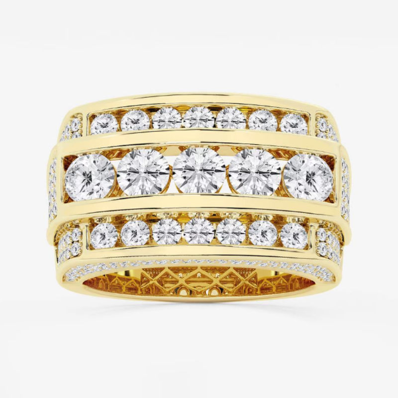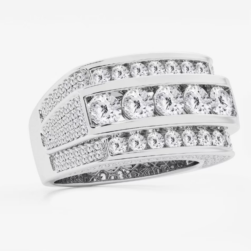 Multi-Row Design: Three bold rows of large round-cut stones enhanced with pavé-set sides for maximum brilliance.