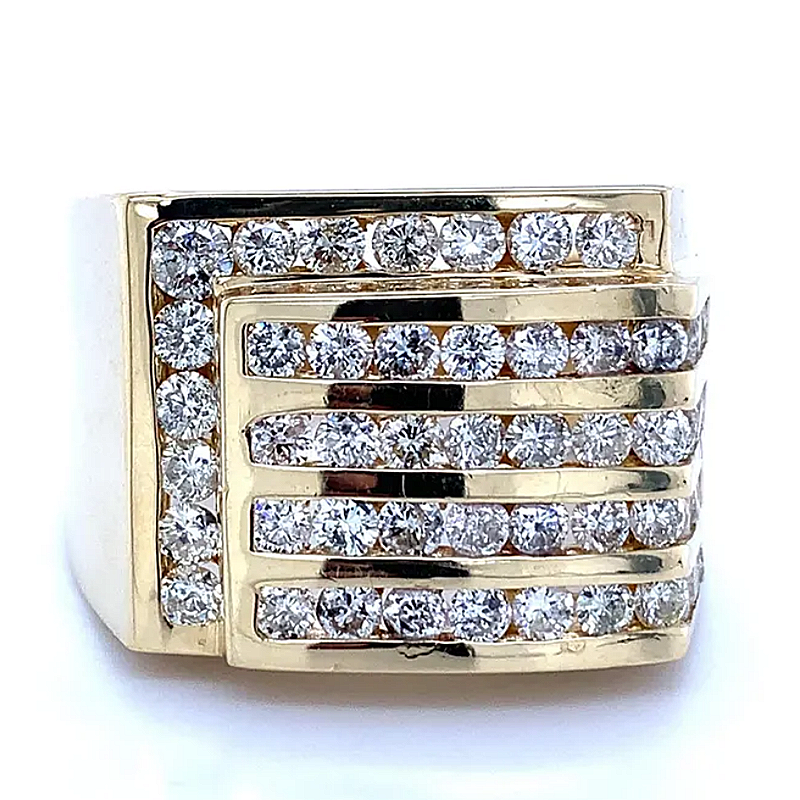 Jzora Handmade Multiple Tiers Channel Set Round CZ Angled Men's Band Ring