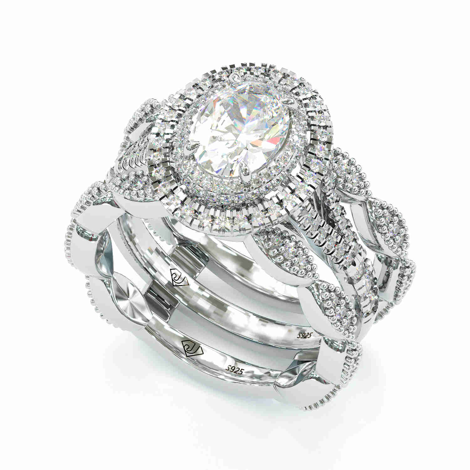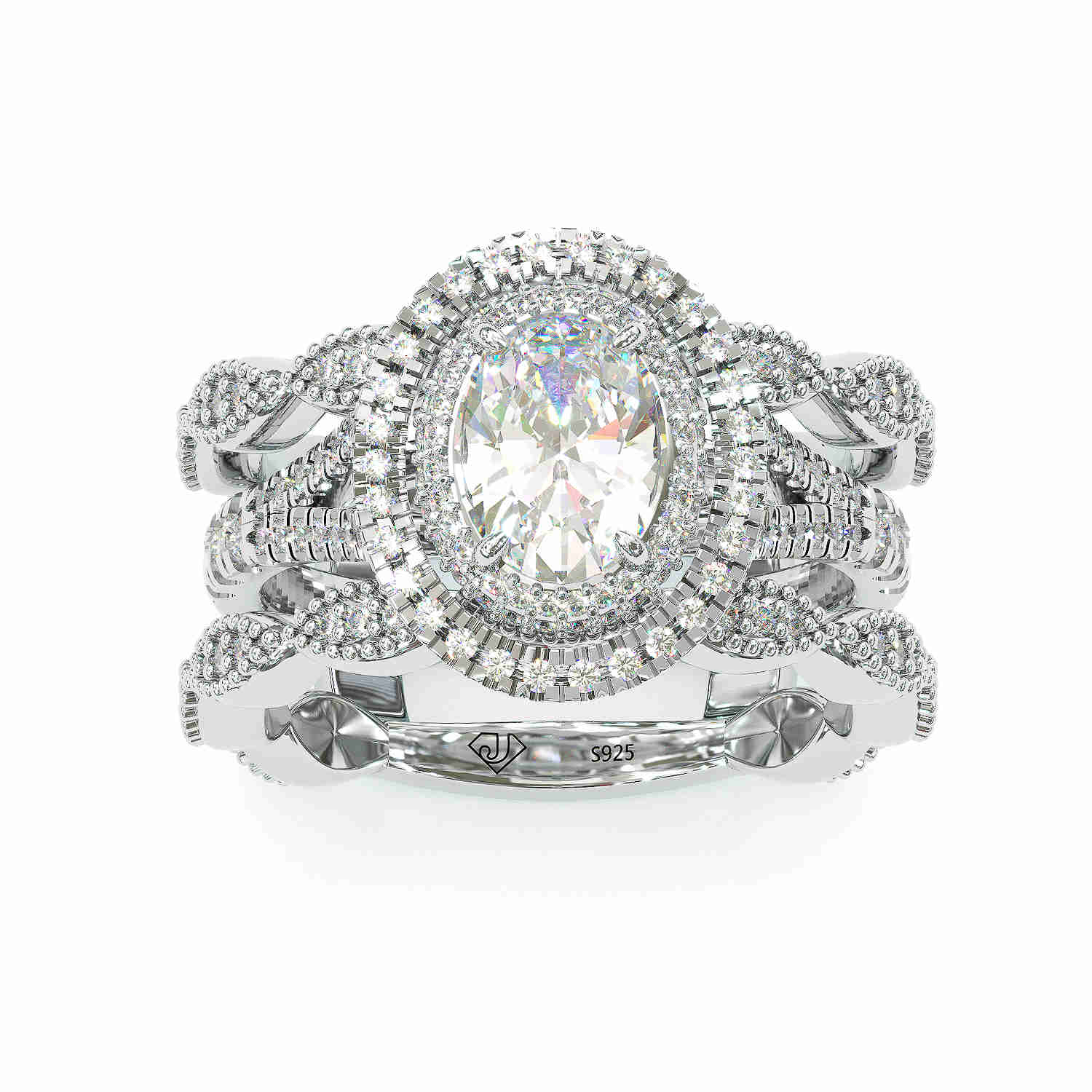 Jzora handmade oval cut halo sterling silver wedding 2 pcs bridal set