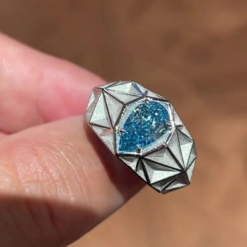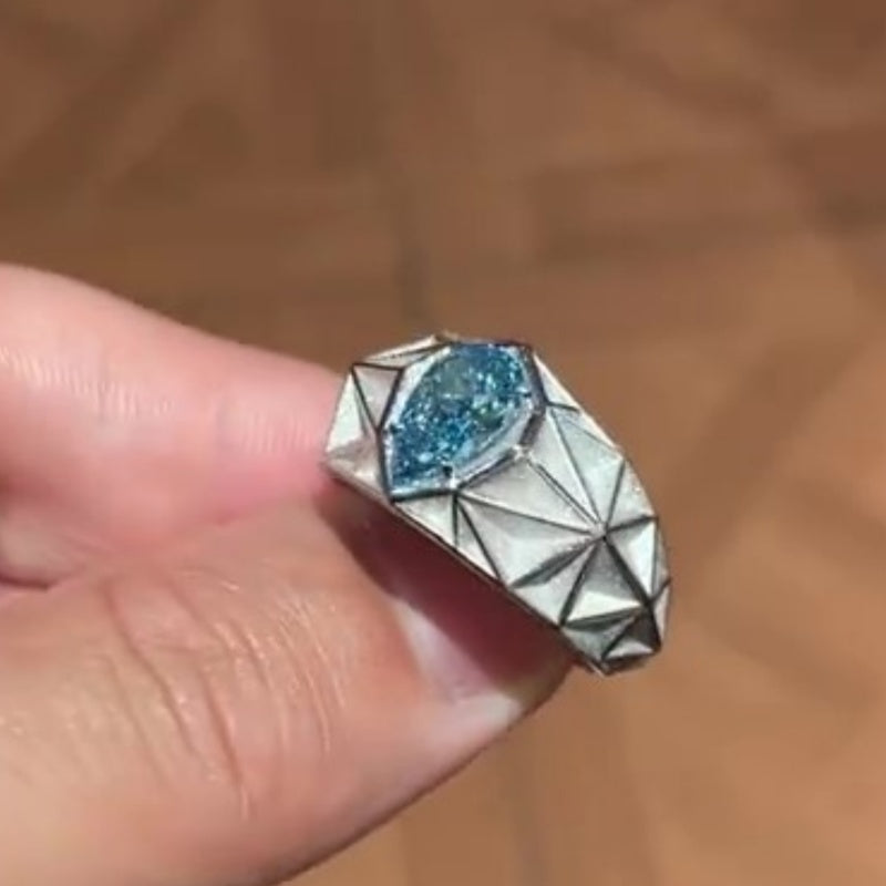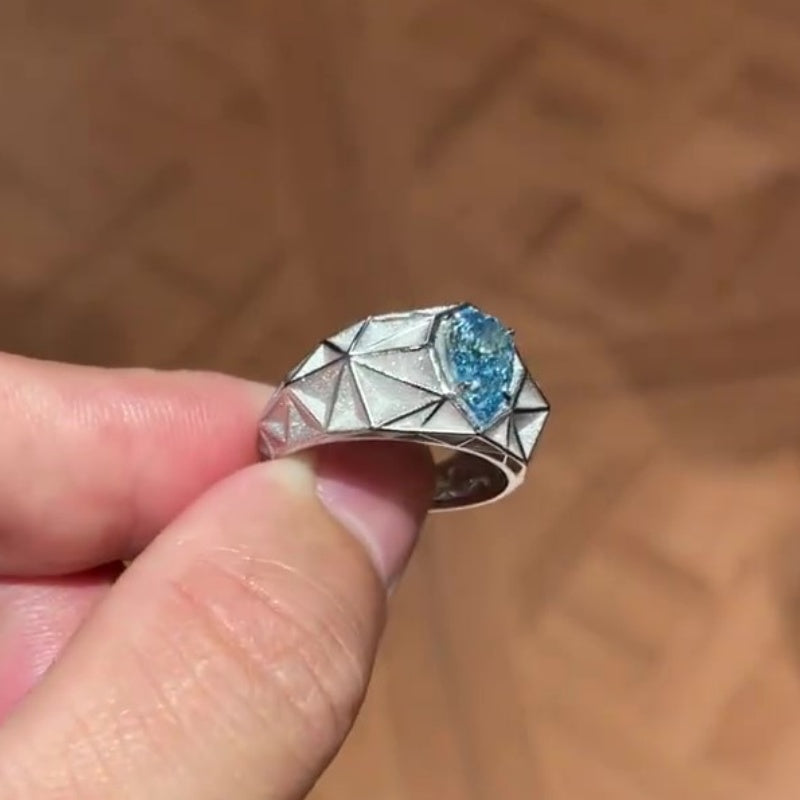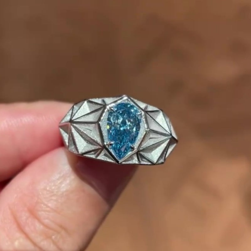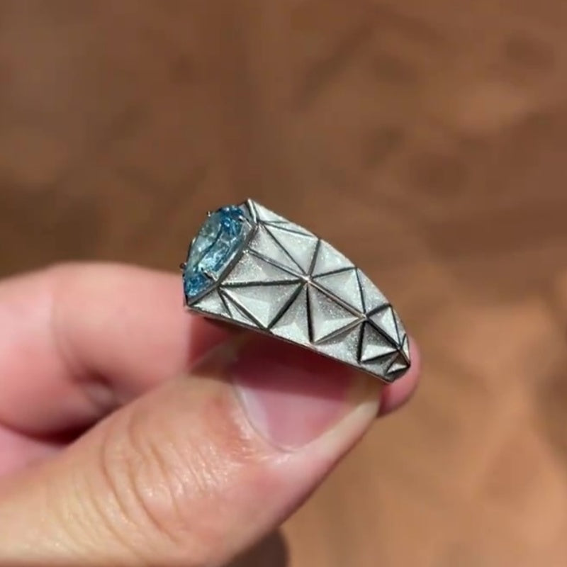 Jzora handmade pear-shaped aqua blue architectural style men’s ring