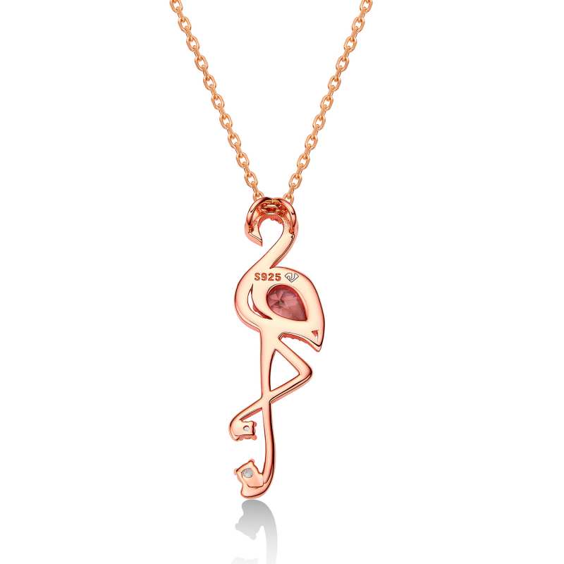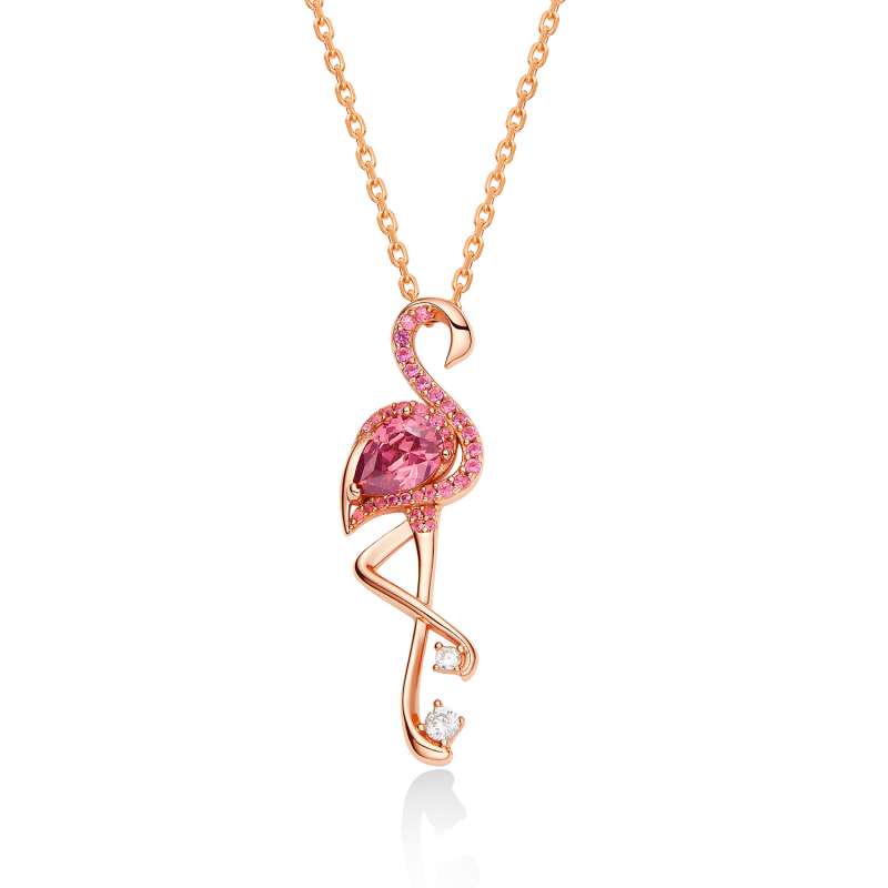Jzora Handmade Pink Flamingo Sterling Silver Diamond Necklace