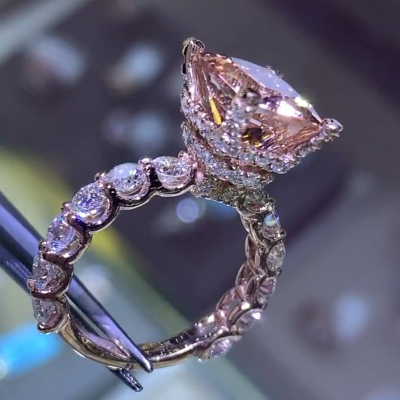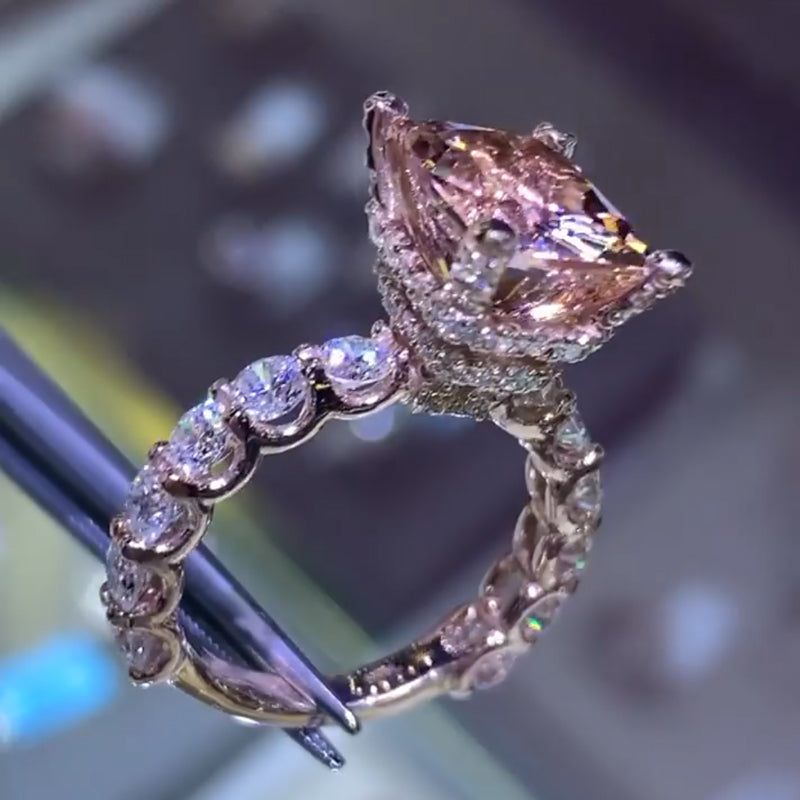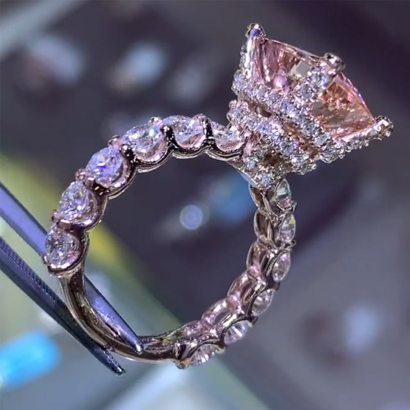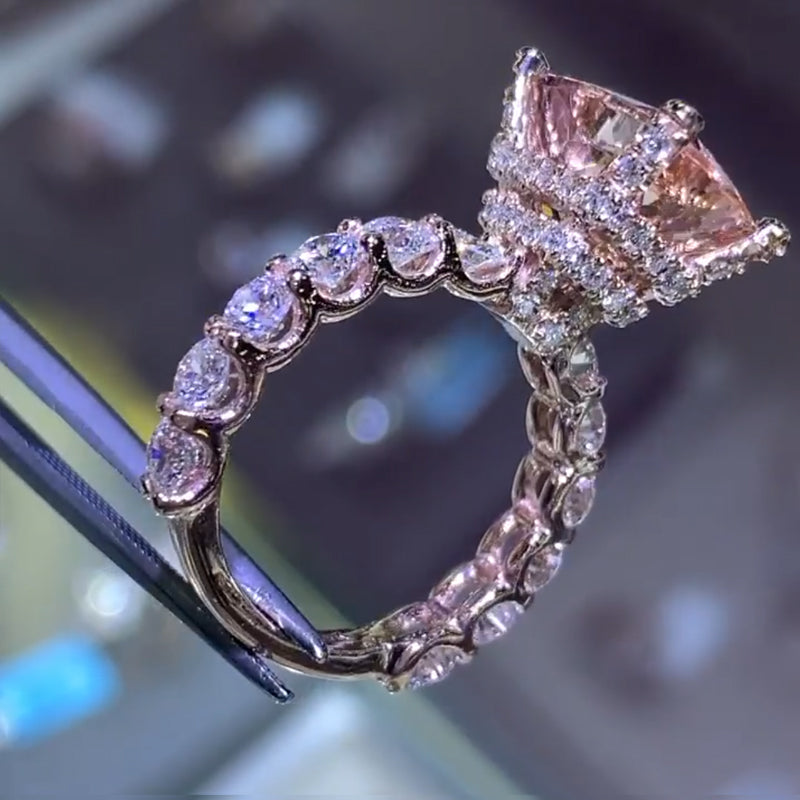 Jzora handmade pink princess cut classic sterling silver engagement ring