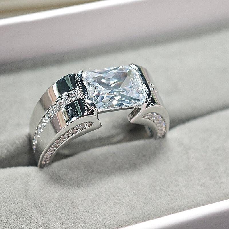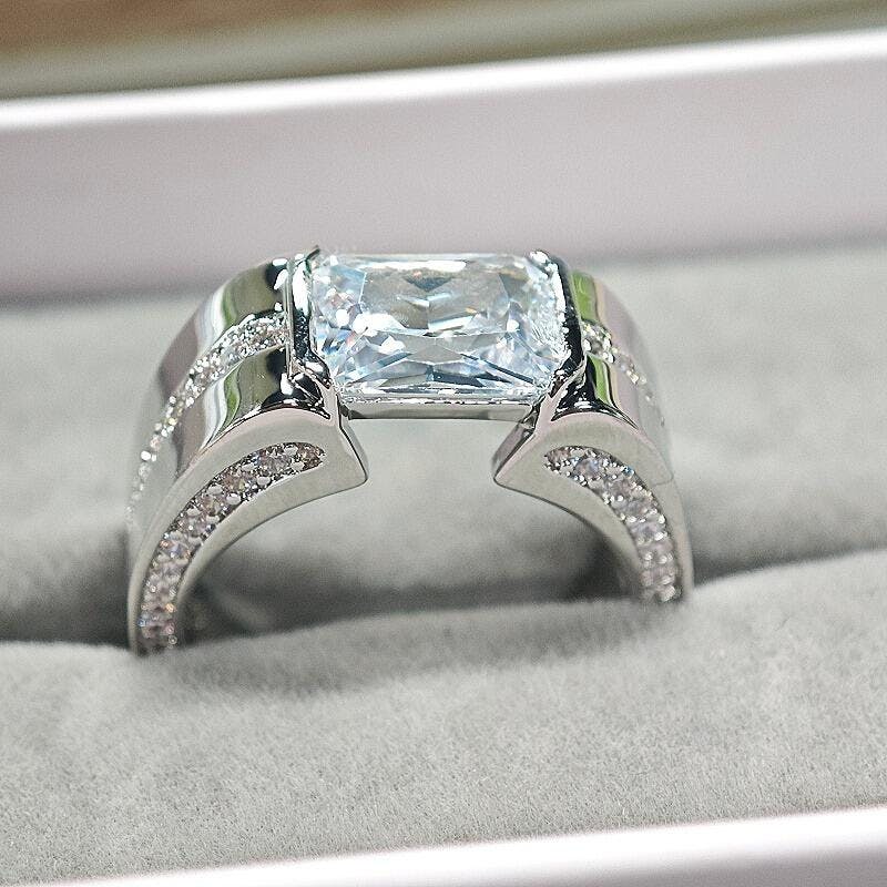 Jzora handmade precision-set 3ct emerald-cut statement men's band ring