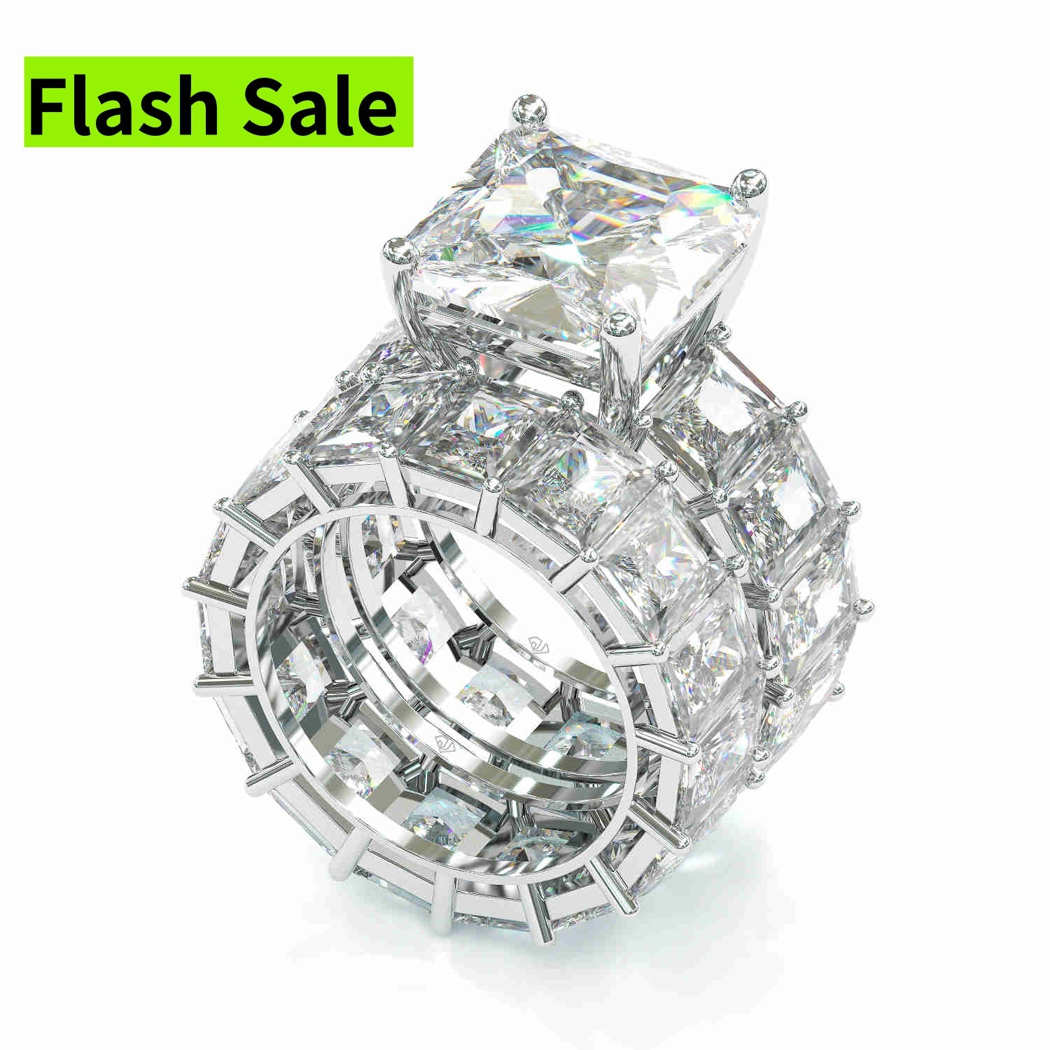 Jzora handmade princess cut created diamond sterling silver wedding ring bridal set