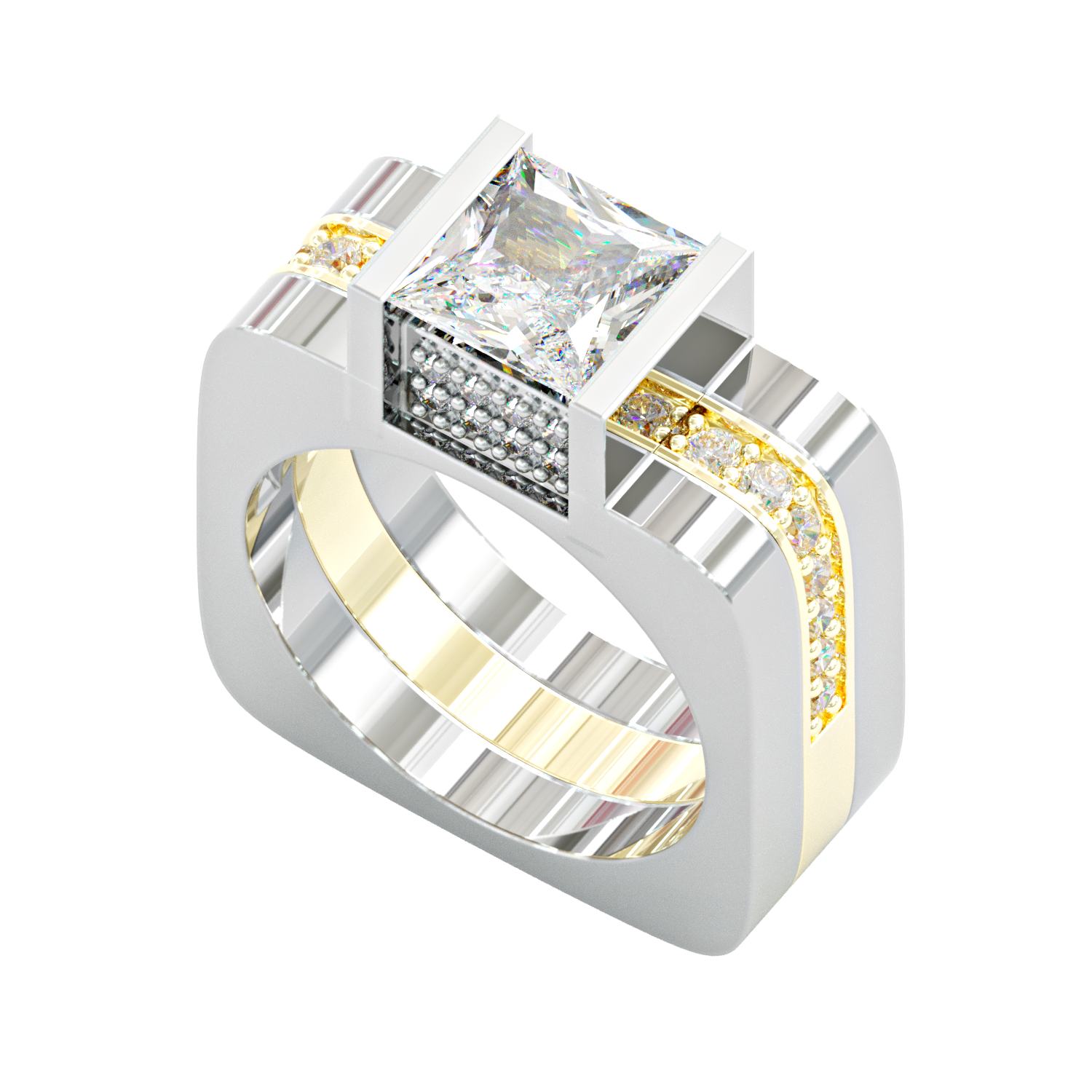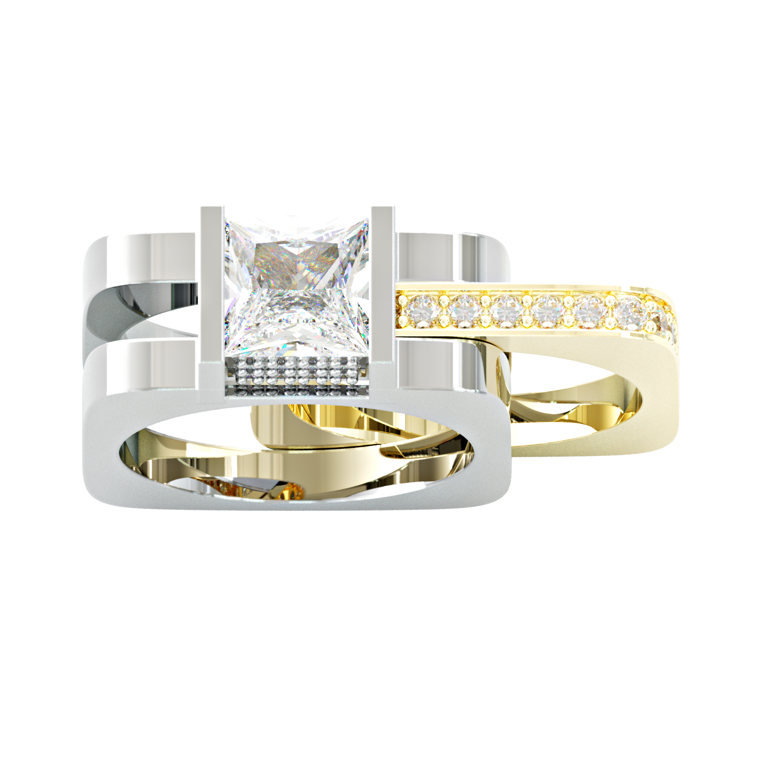 Jzora handmade princess cut geometric two tone men's ringset