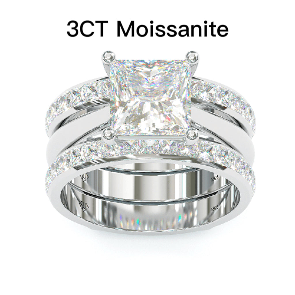 Jzora handmade princess cut Moissanite anniversary ring wedding ring bridal set