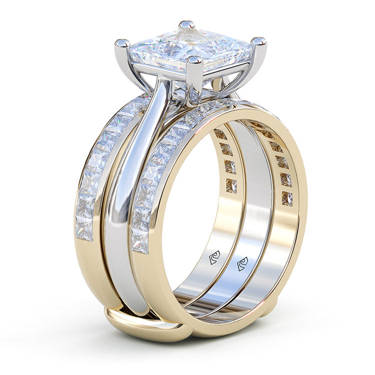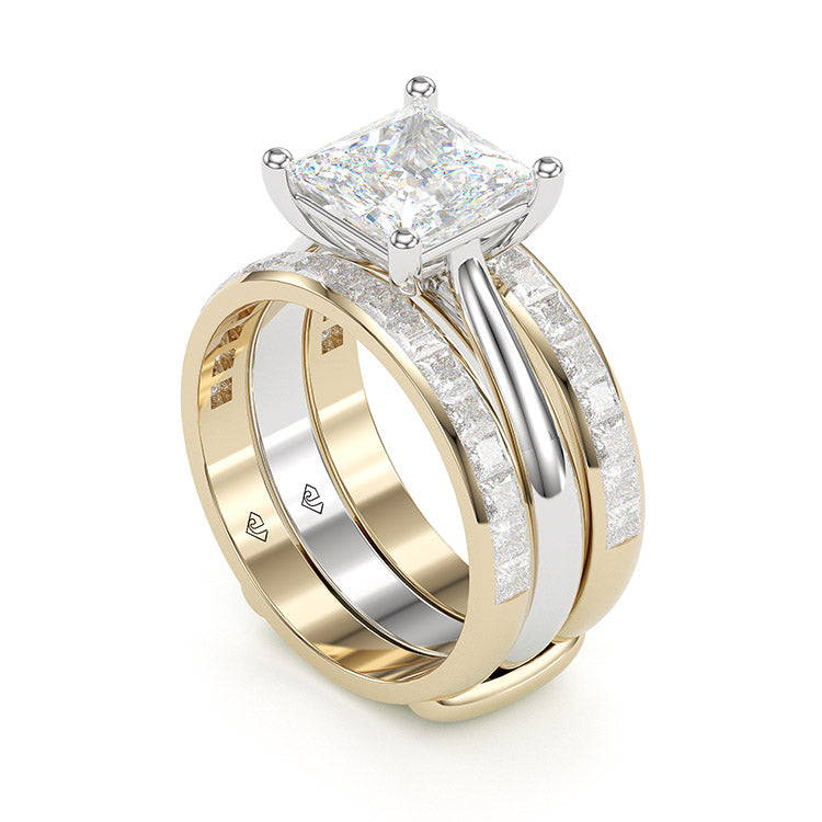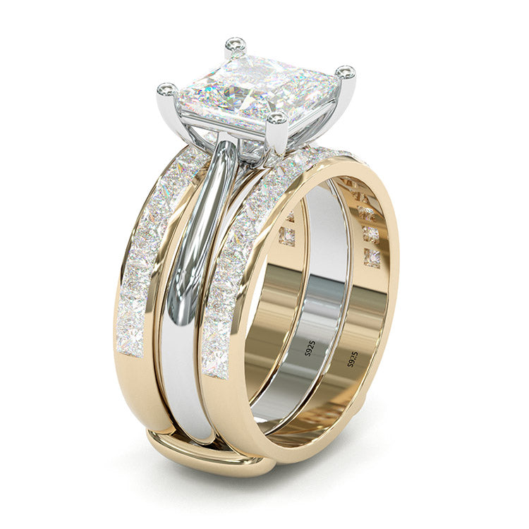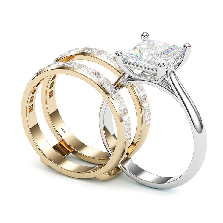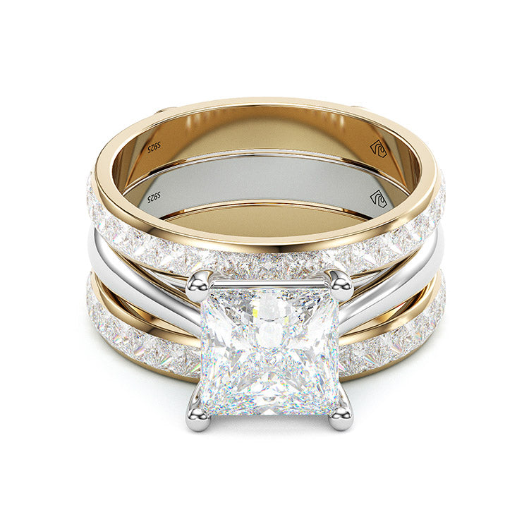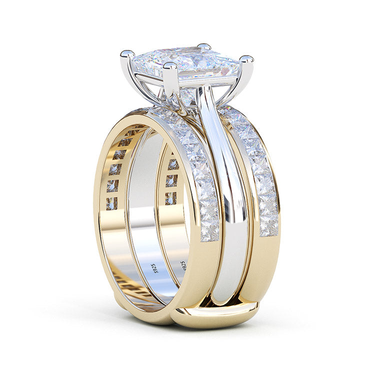 Jzora handmade princess cut Moissanite two tone anniversary ring wedding ring bridal set