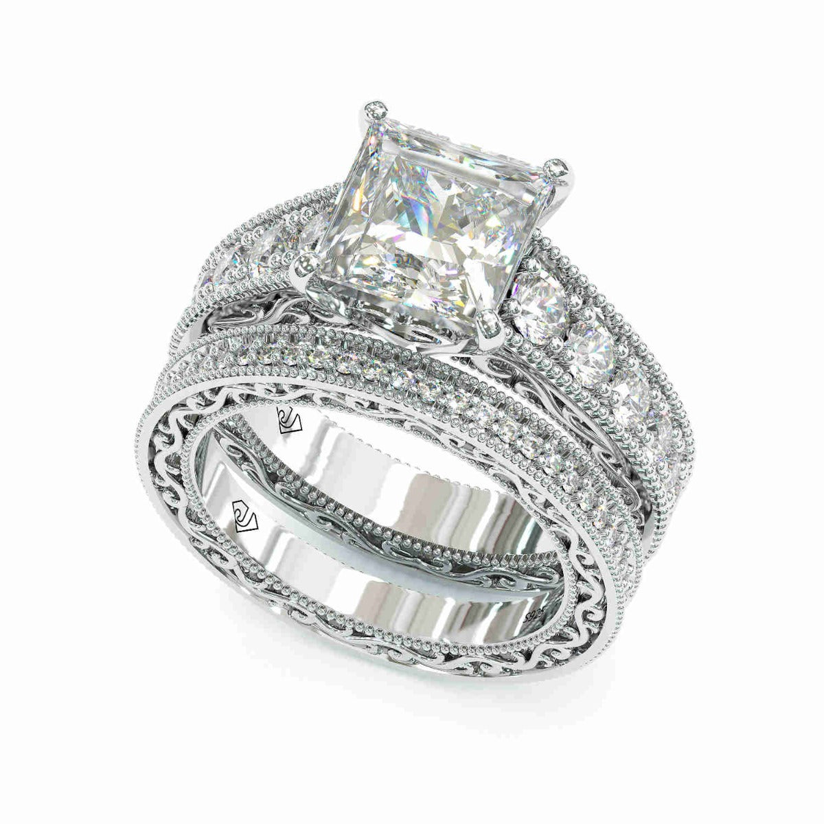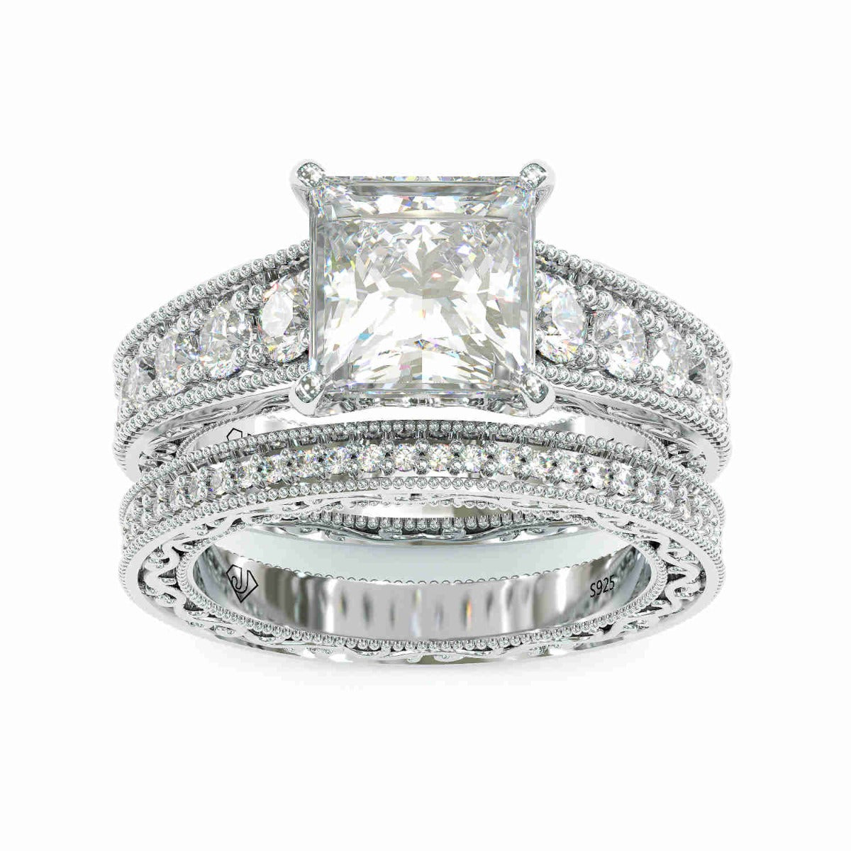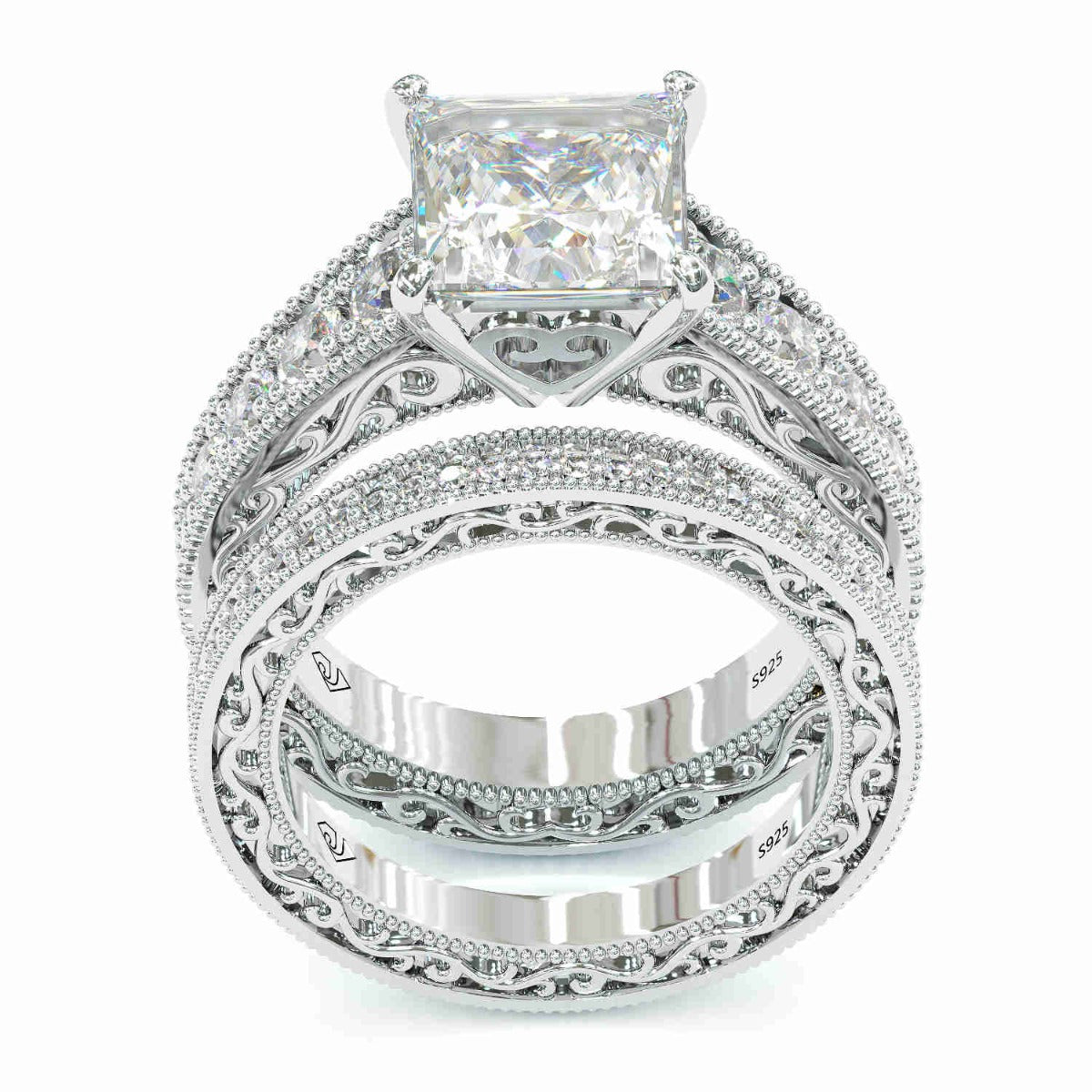 Jzora handmade princess cut sterling silver classic wedding ring bridal set