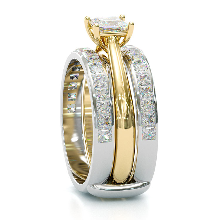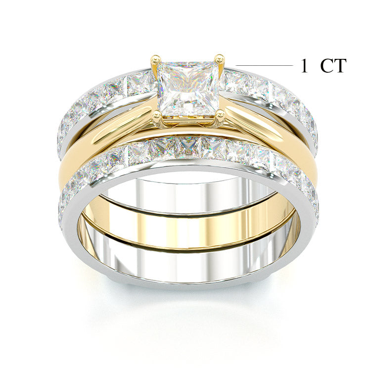 Jzora handmade princess cut two tone sterling silver wedding ring bridal set