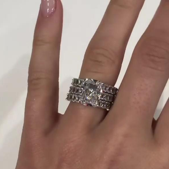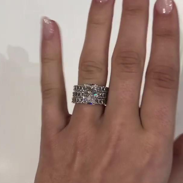 Jzora Handmade Radiant Cut 3 Pcs Sterling Silver Wedding Ring Bridal Set