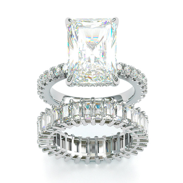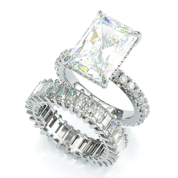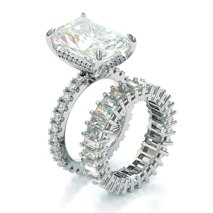 Jzora handmade radiant cut created diamond sterling silver wedding ring bridal set