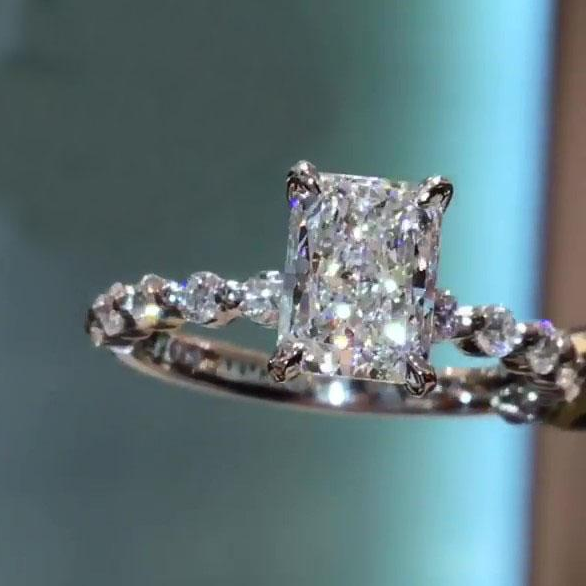 Jzora Handmade Radiant Cut Round Diamond Sterling Silver Engagement Ring