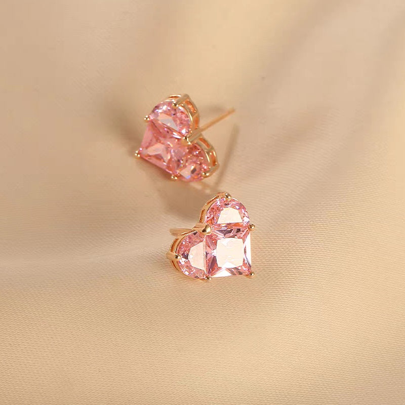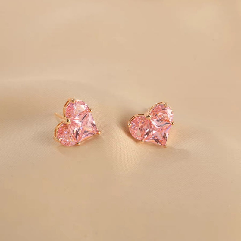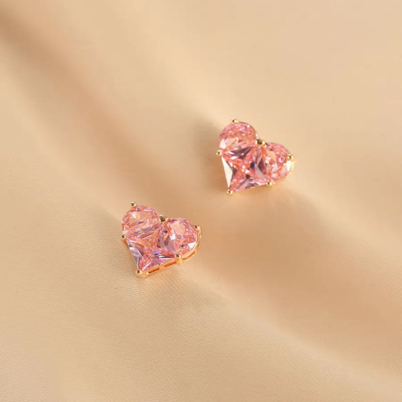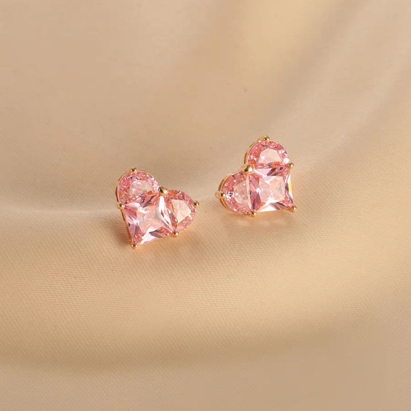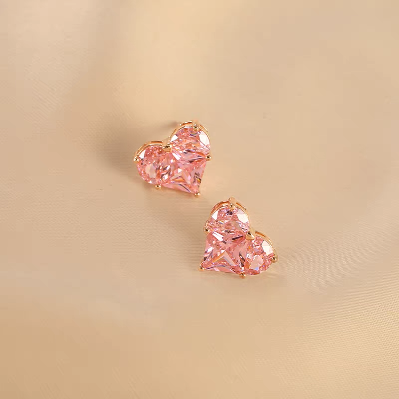 Jzora handmade romantic pink heart shaped sterling silver stud earrings