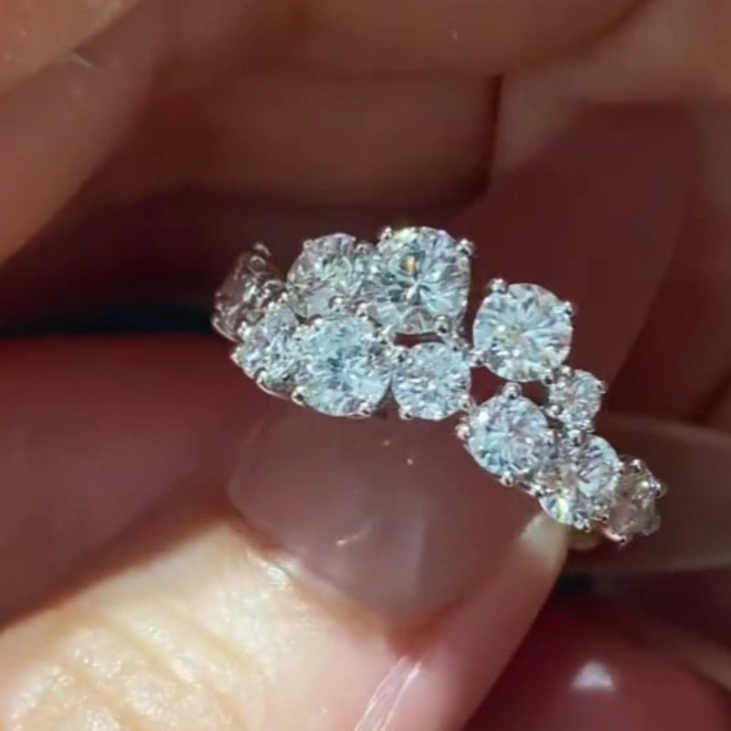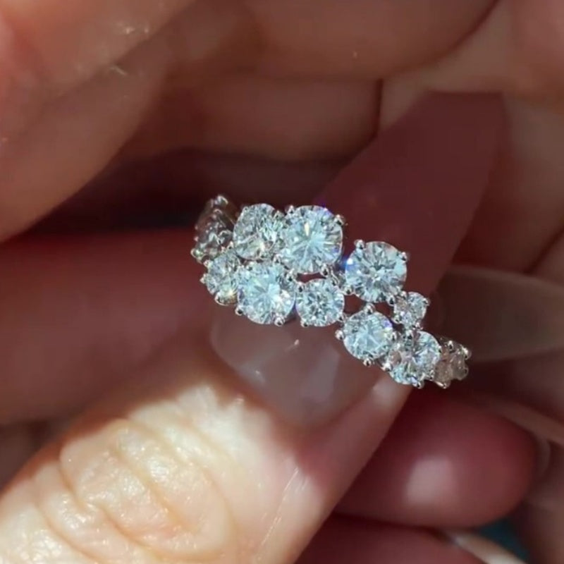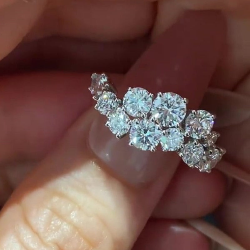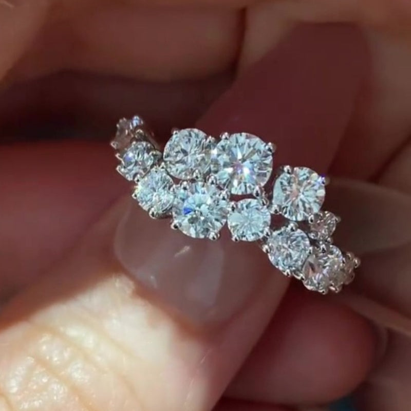 Dazzling Cluster Design – Features multiple brilliant-cut stones arranged in a bold, eye-catching cluster.