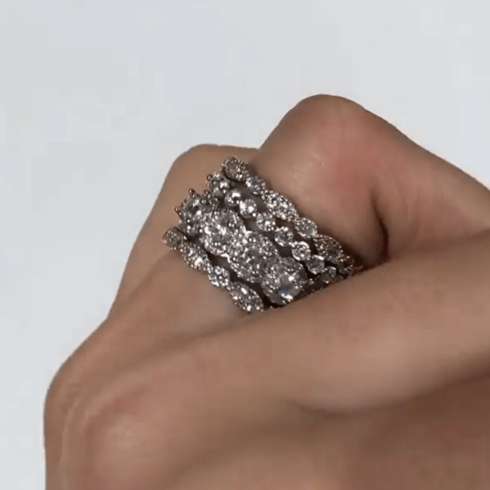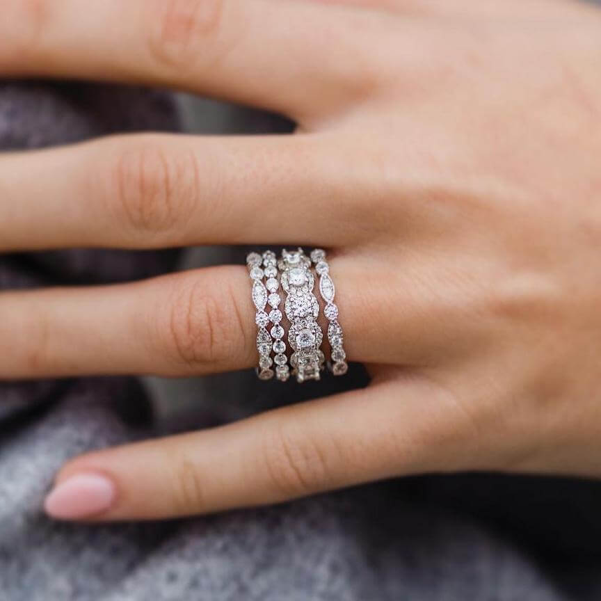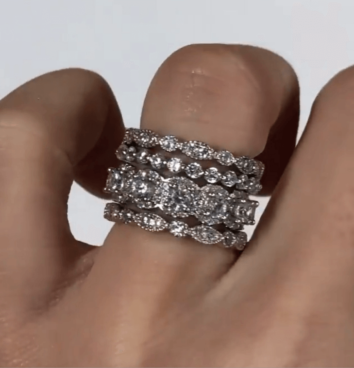 Jzora handmade round cut 4 pieces vintage sterling silver wedding band