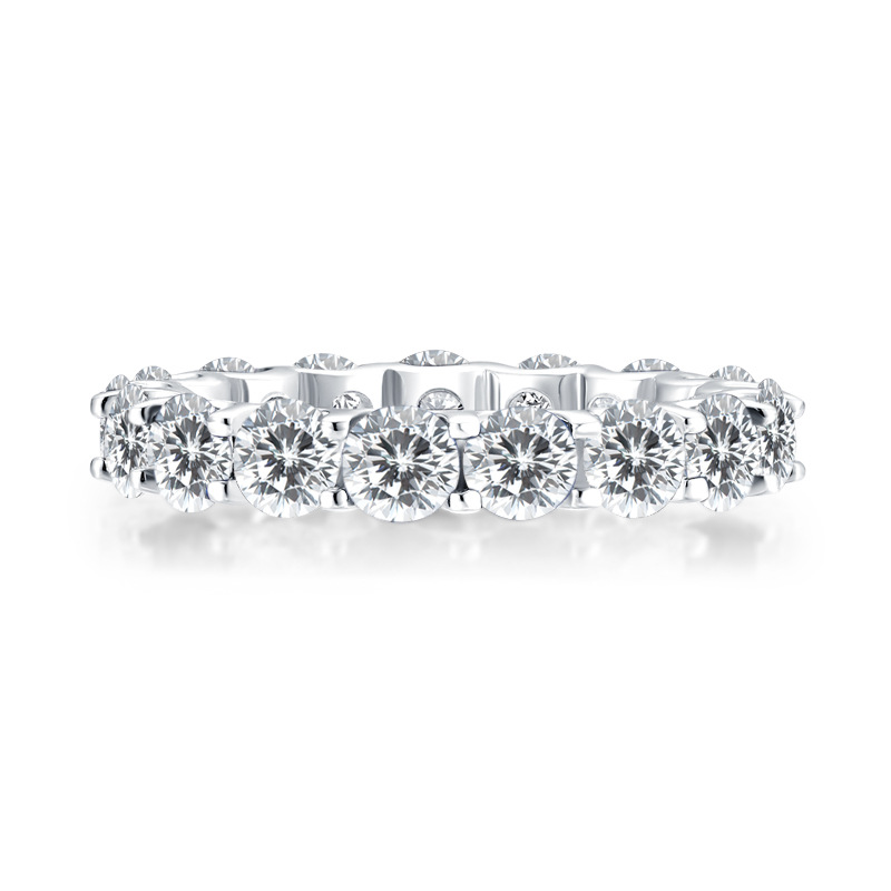 Jzora handmade round cut created diamond simple style sterling silver eternity women's band