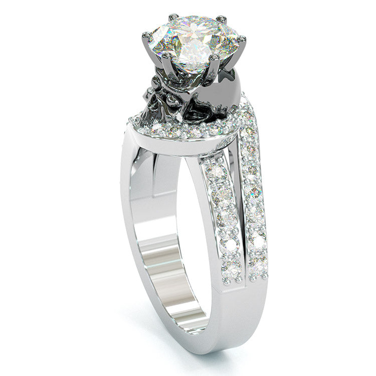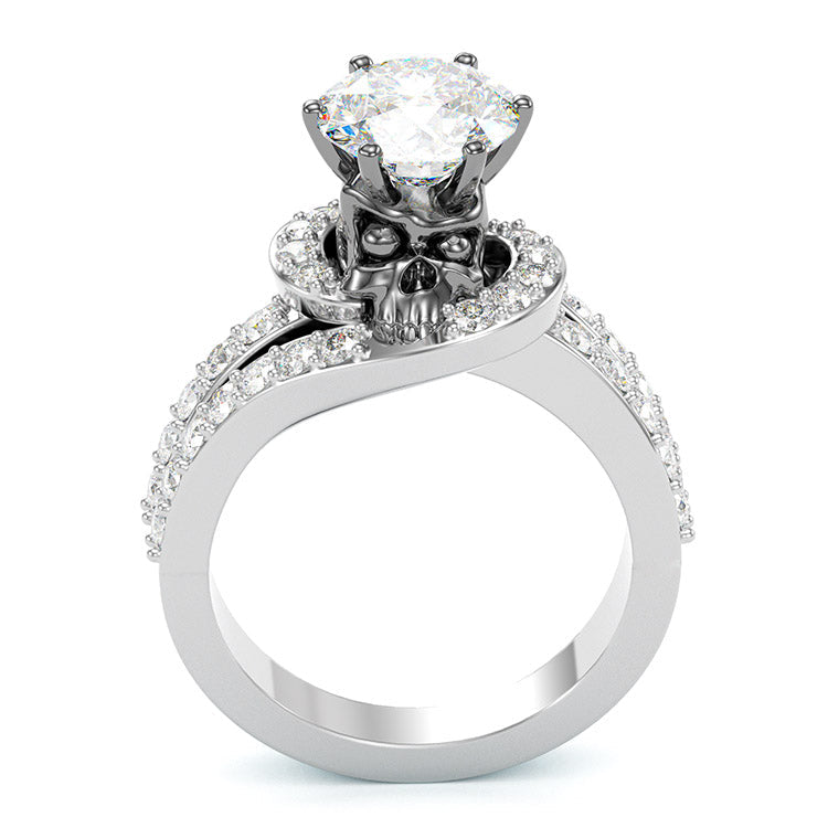 Jzora handmade round cut ruby diamond with skull sterling silver Halloween ring