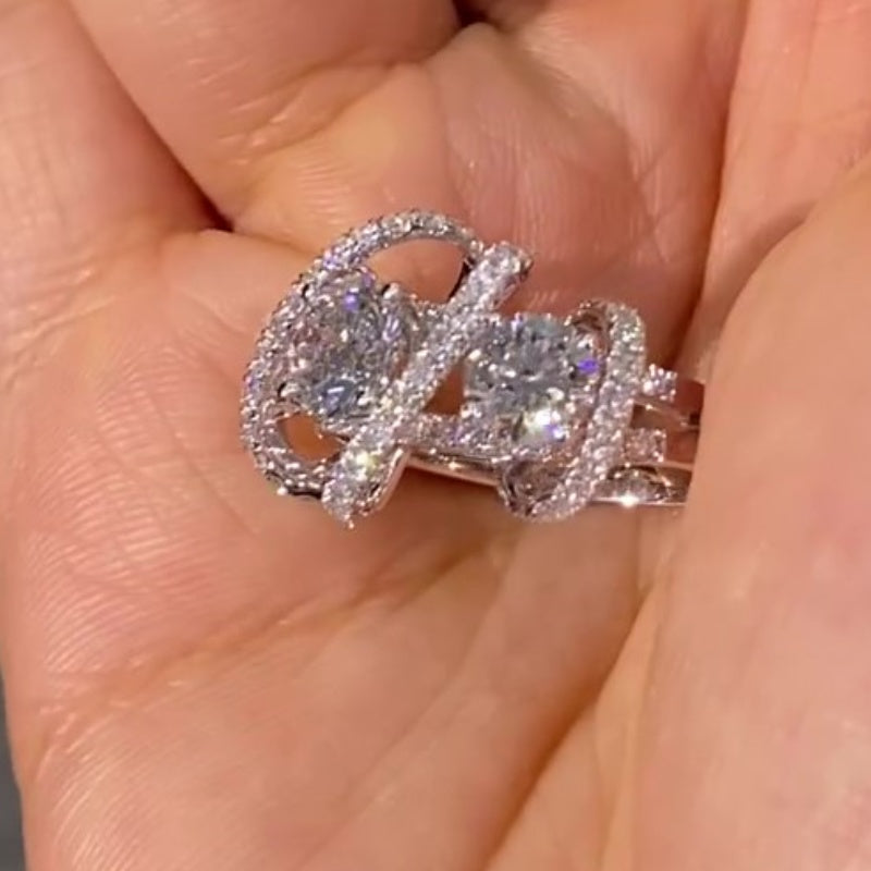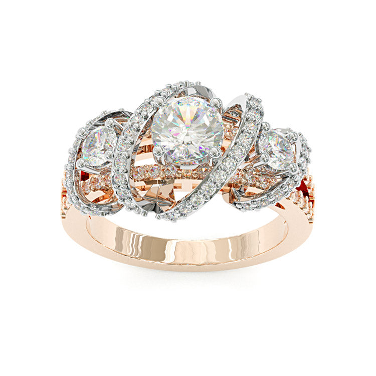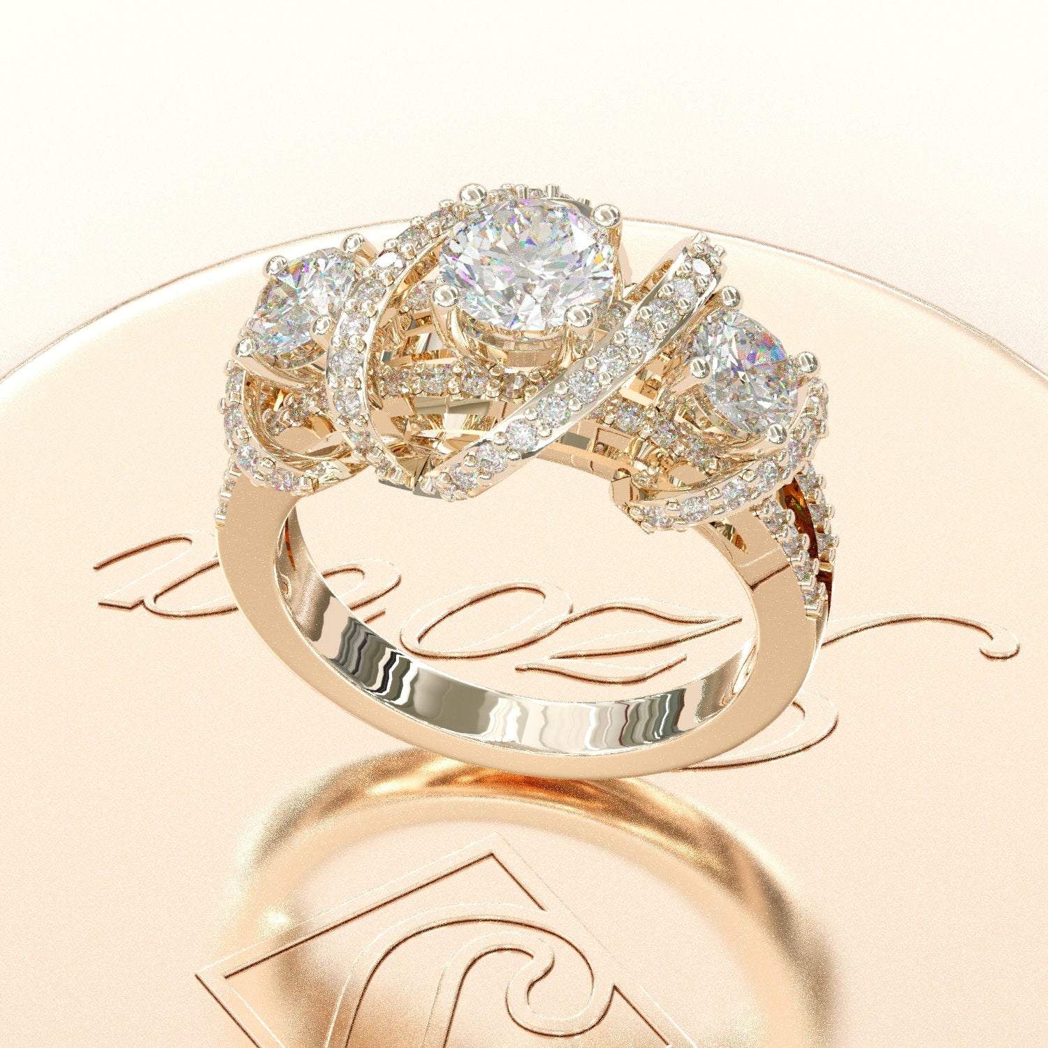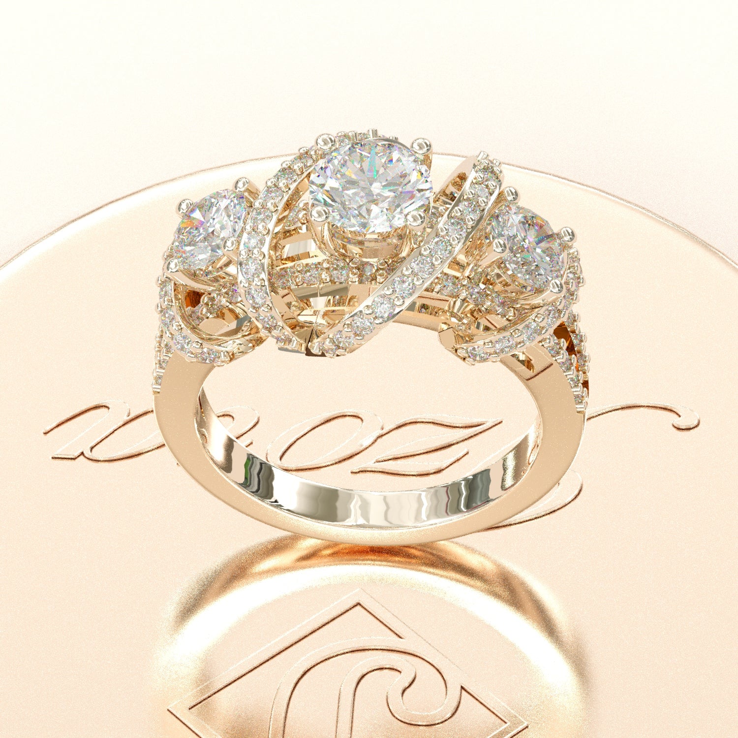 Crisscross Pavé Halo Bands: Elegant loops of sparkling micro-stones wrap around the center for a luxurious, dimensional effect.