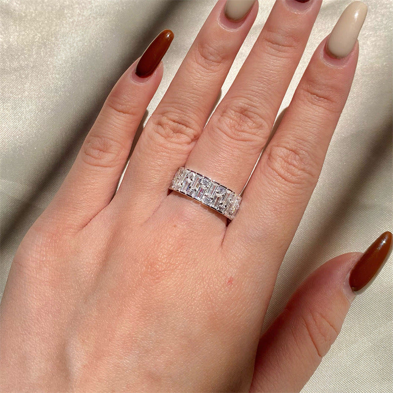 Jzora handmade round&emerald sterling silver unisex ring band