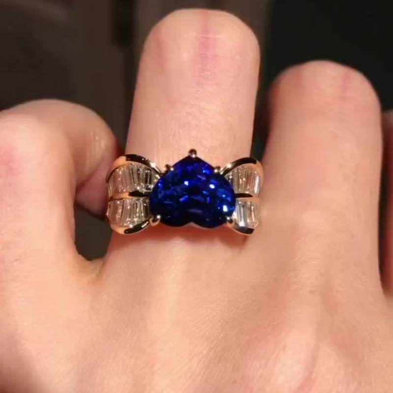 Jzora handmade sapphire heart cut sterling silver wedding engagement ring