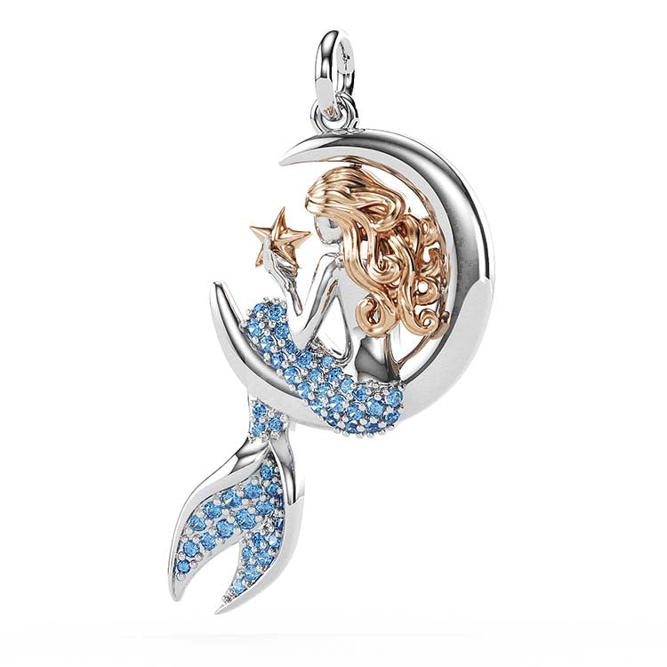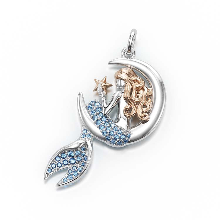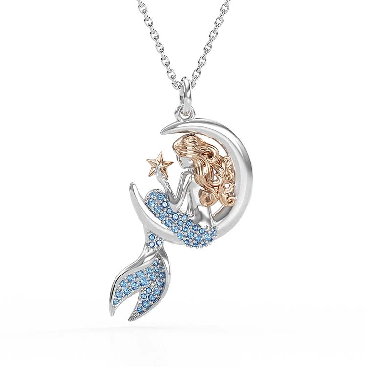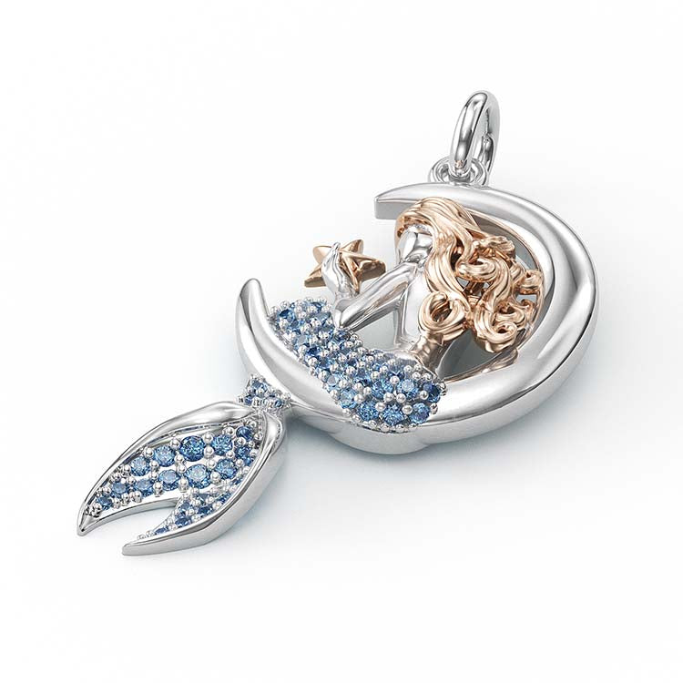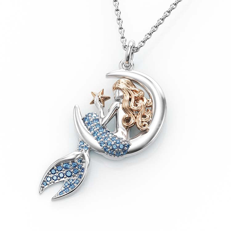 Jzora Handmade Sapphire Mermaid Sterling Silver Diamond Necklace