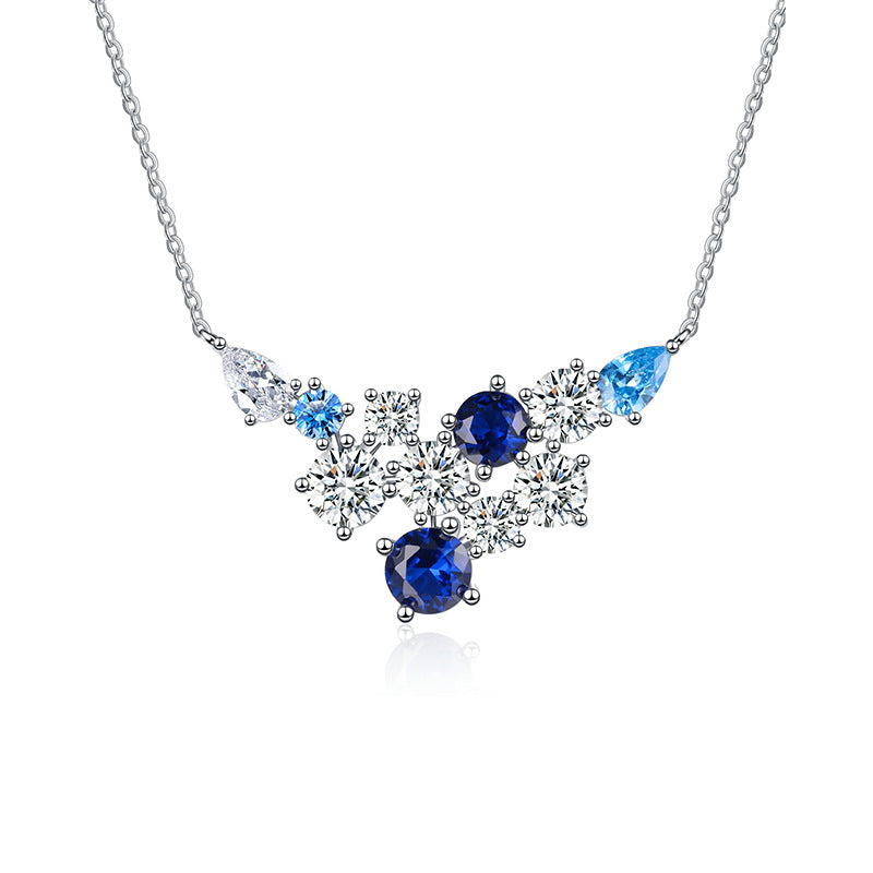 Jzora handmade sapphire round cut luxury sterling silver necklace