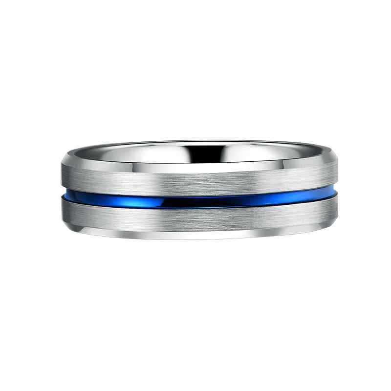 Jzora handmade simple style blue tungsten Steel wedding men's band