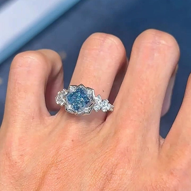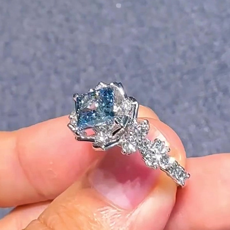 Jzora handmade sparkling aqua blue & white stone floral halo sterling silver ring