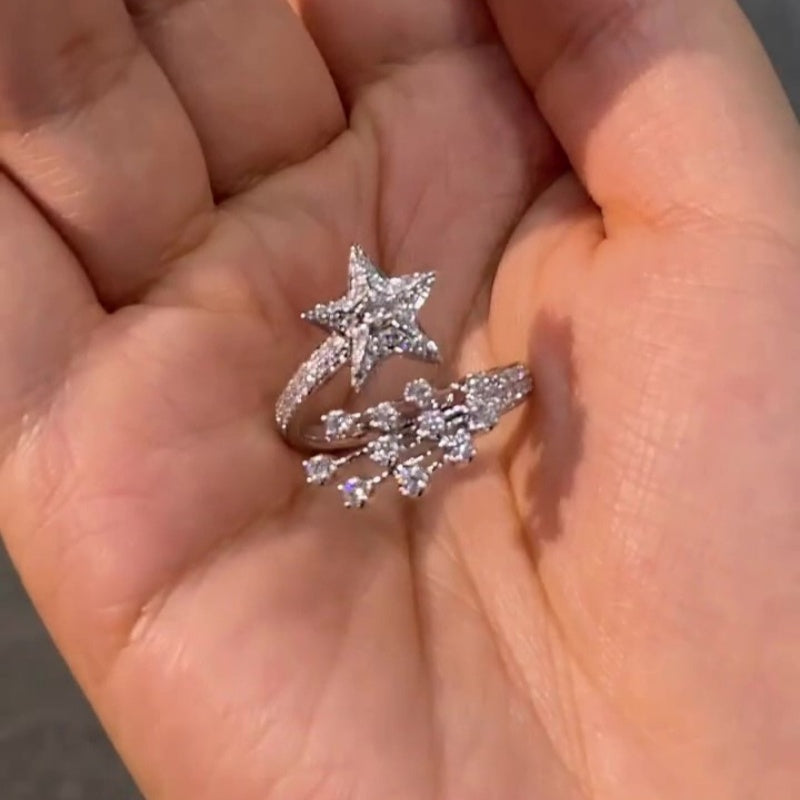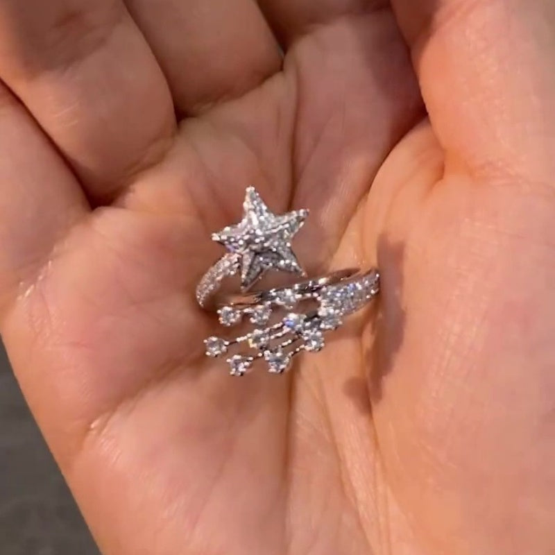Jzora handmade sparkling starry meteor shower wish sterling silver moissanite ring