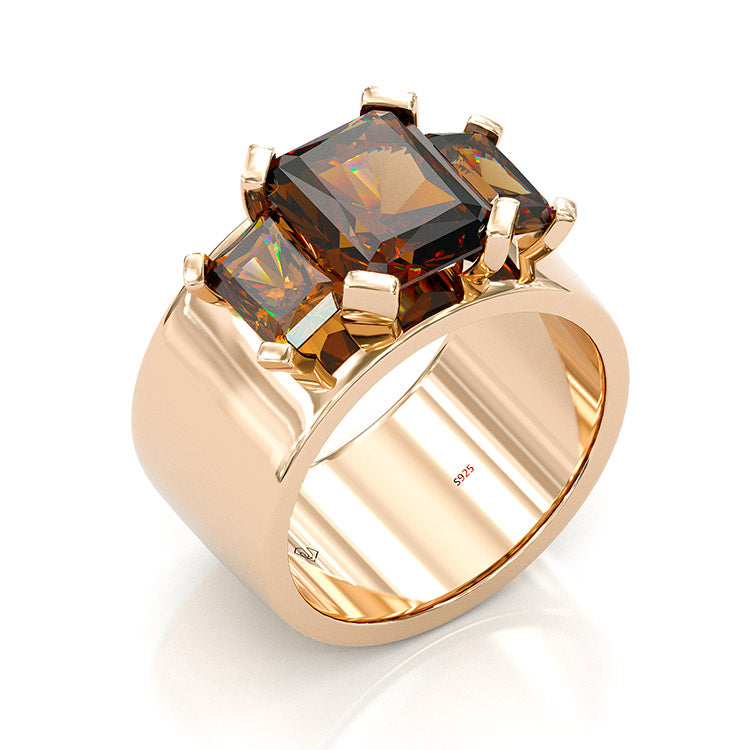 Jzora handmade three stone radiant cut sterling silver wedding ring