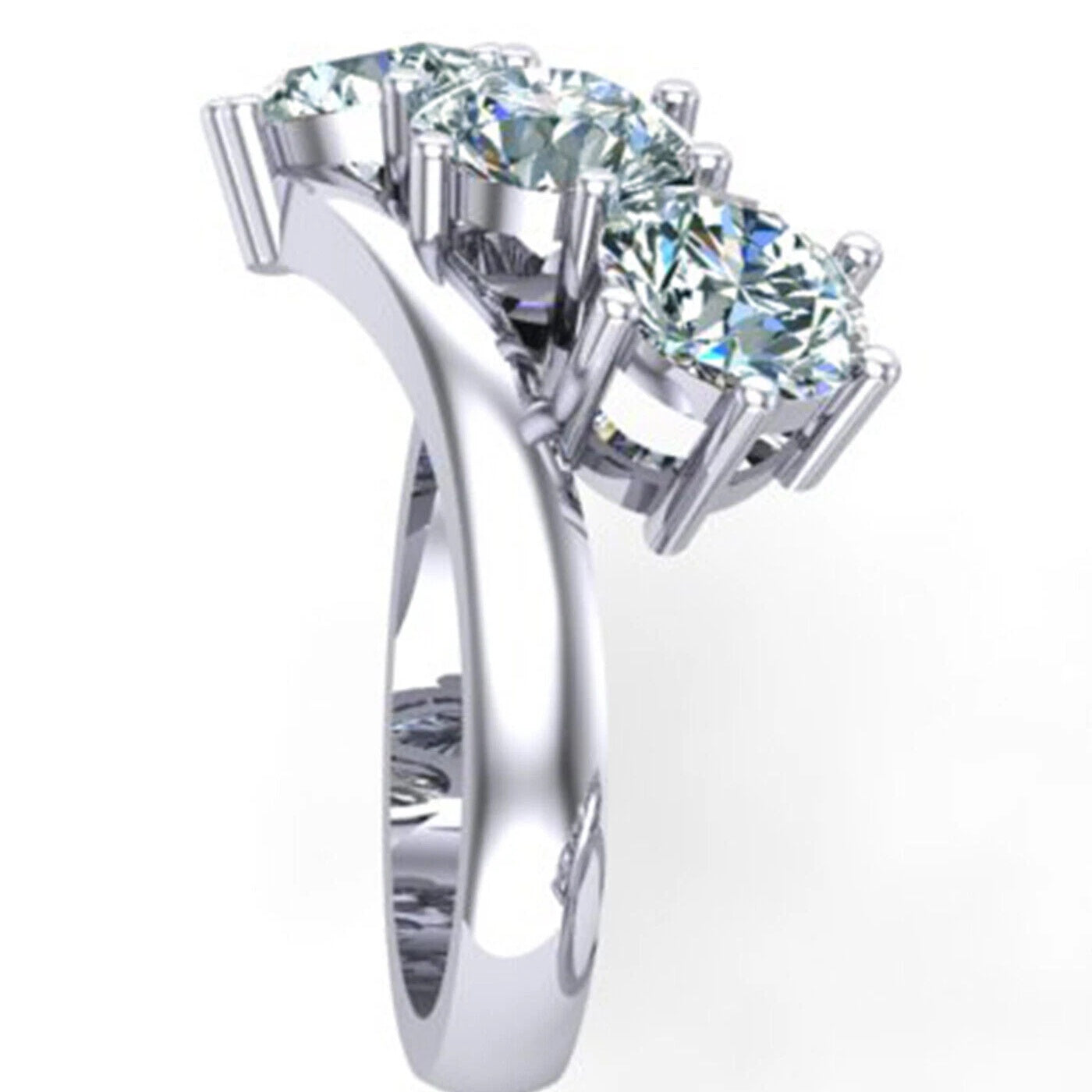 Jzora handmade three stone round cut moissanite sterling silver ring