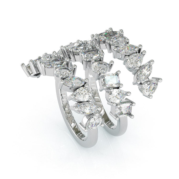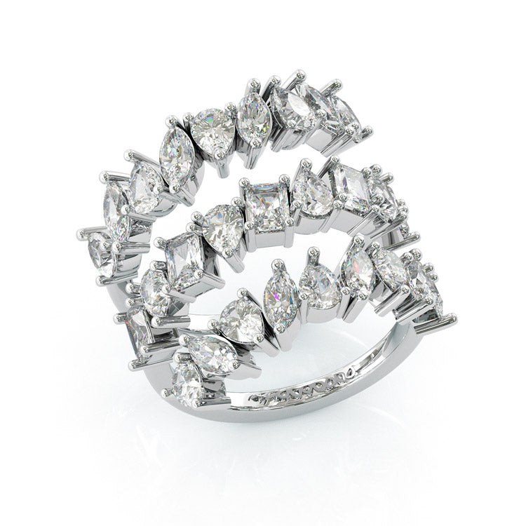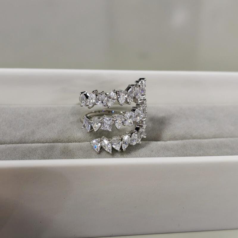 Jzora handmade triple row spiral wrap diamond sterling silver ring