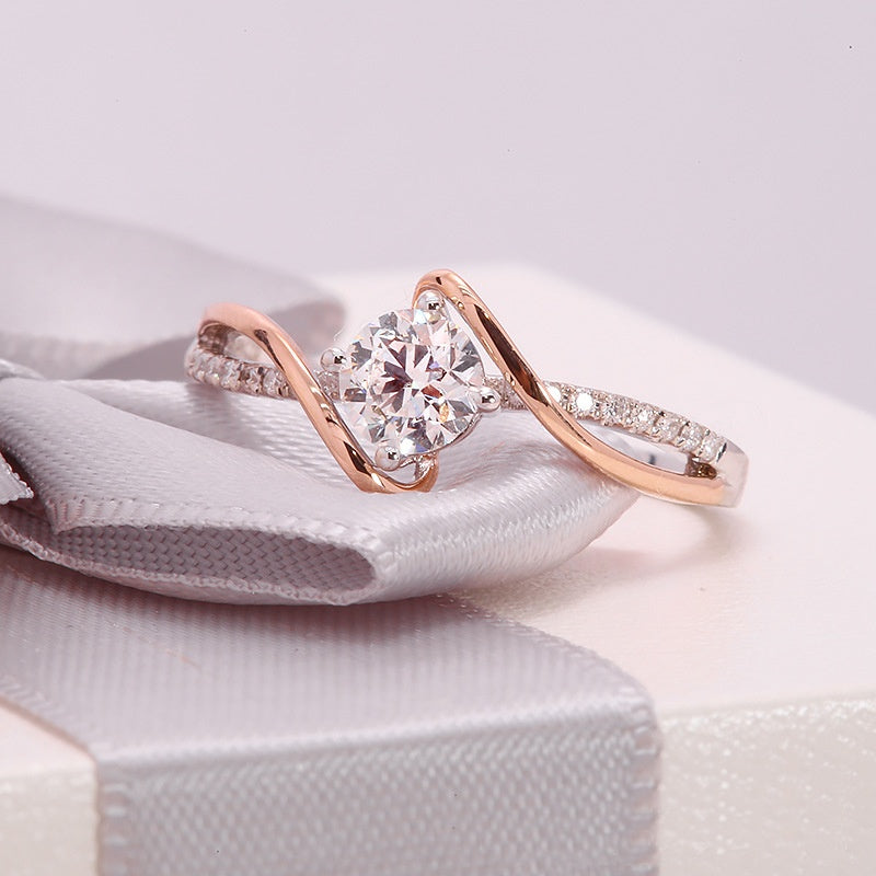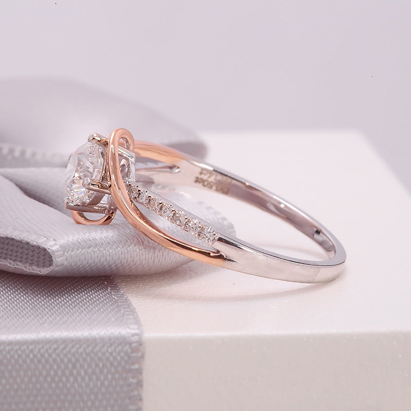 Jzora handmade two-tone round cut moissanite elegant sterling silver ring