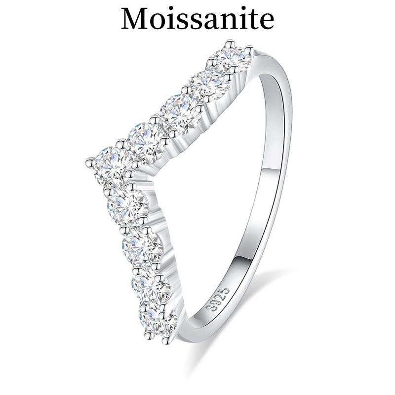 Jzora handmade V-shaped stackable moissanite sterling silver ring