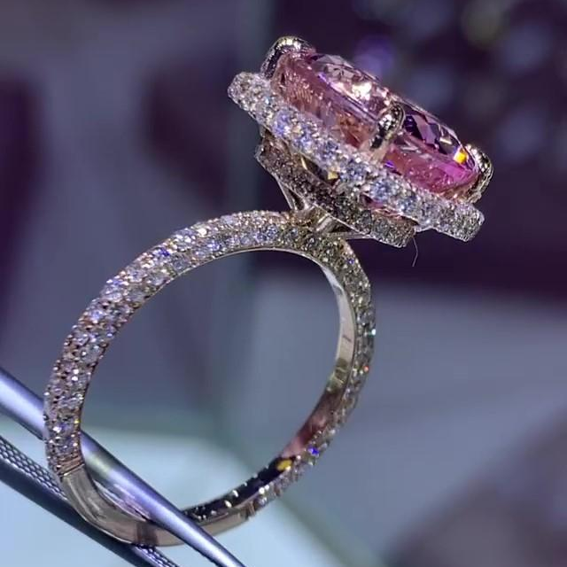 Jzora handmade vintage pink diamond sterling silver engagement ring
