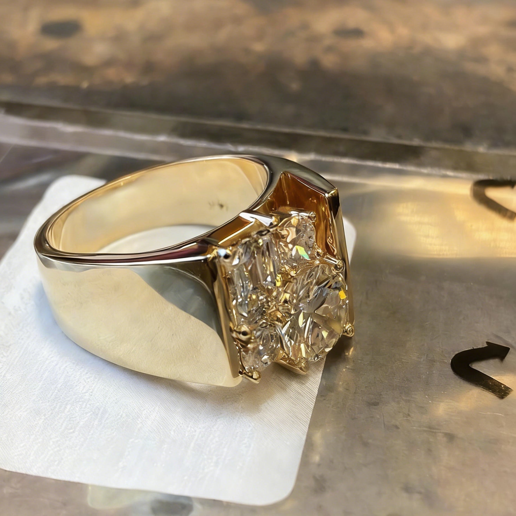 Jzora Handmade Vintage Round and Emerald Cut Men's Wide Band Ring