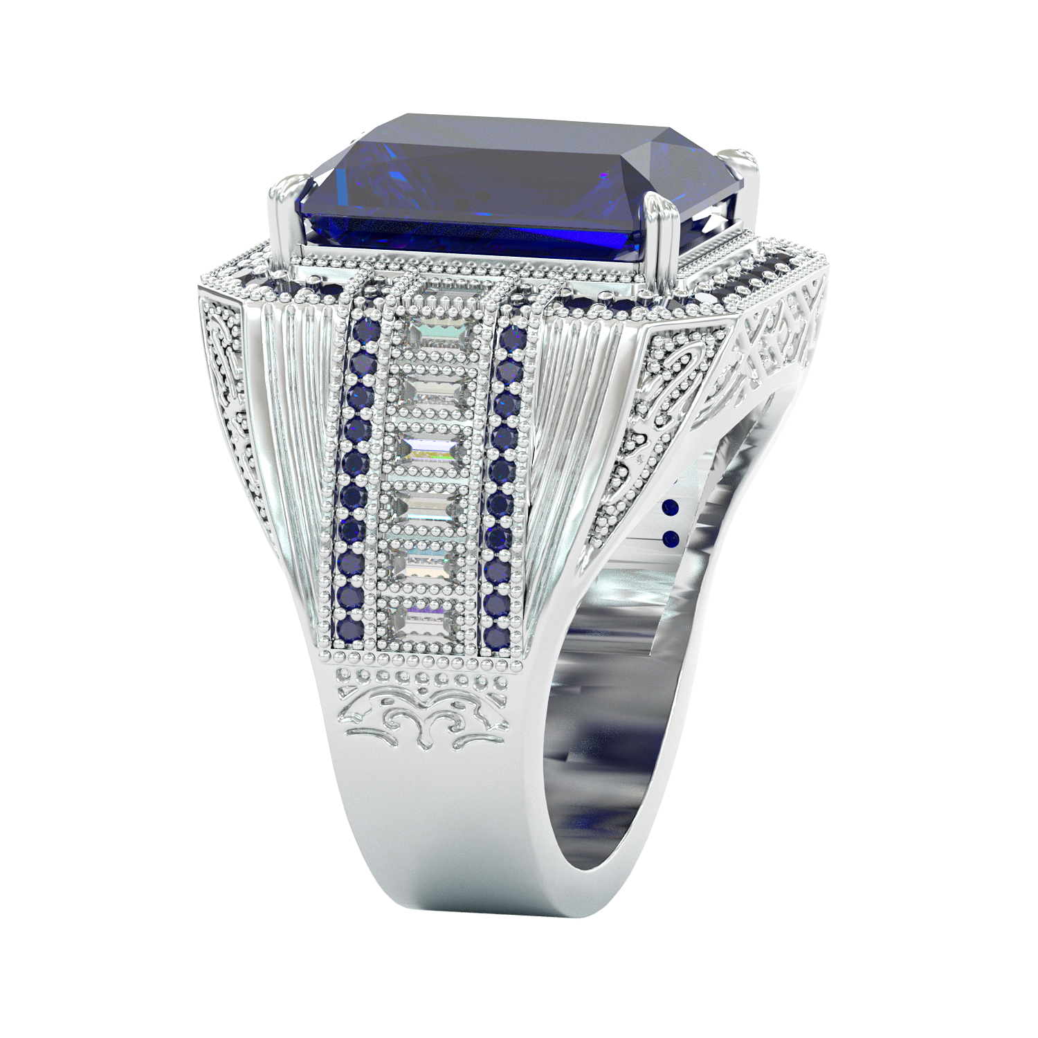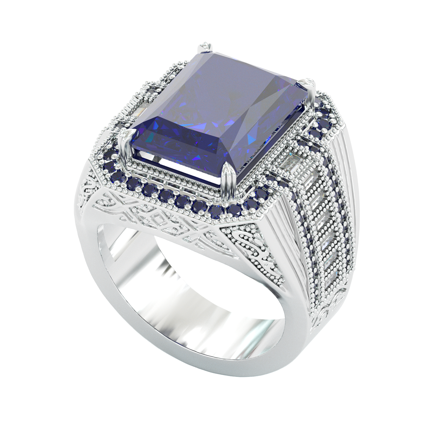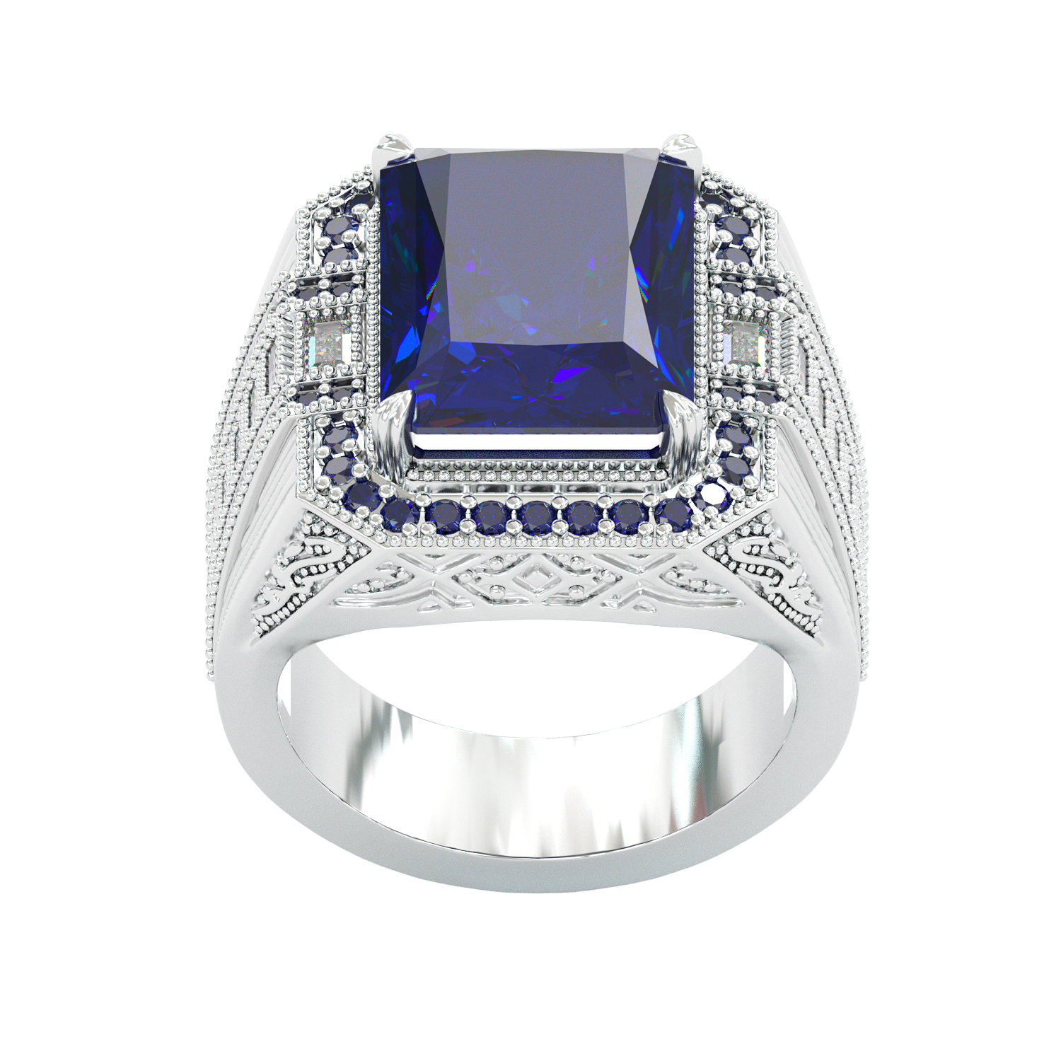 Jzora handmade vintage-style radiant cut blue sapphire men’s ring