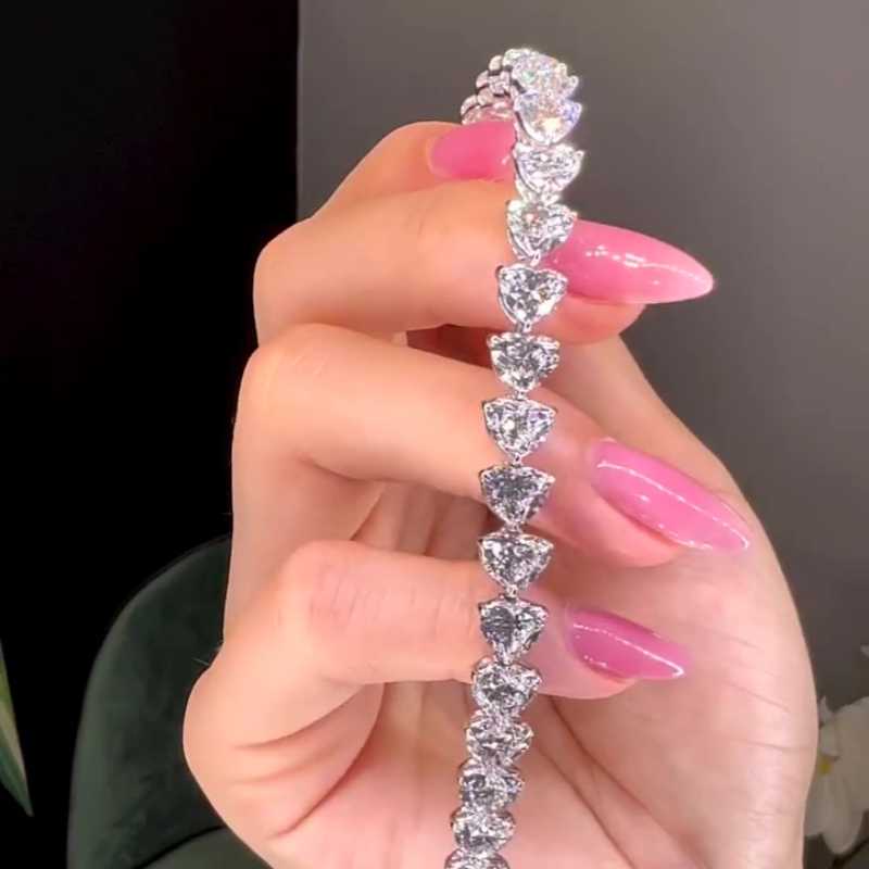 Jzora handmade white heart shape multi stone sterling silver tennis bracelet