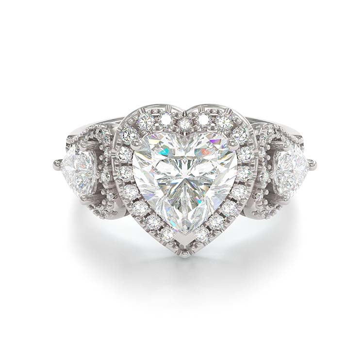 Jzora Heart Cut Created Diamond Sterling Silver Wedding Ring Engagement Ring Vintage Ring