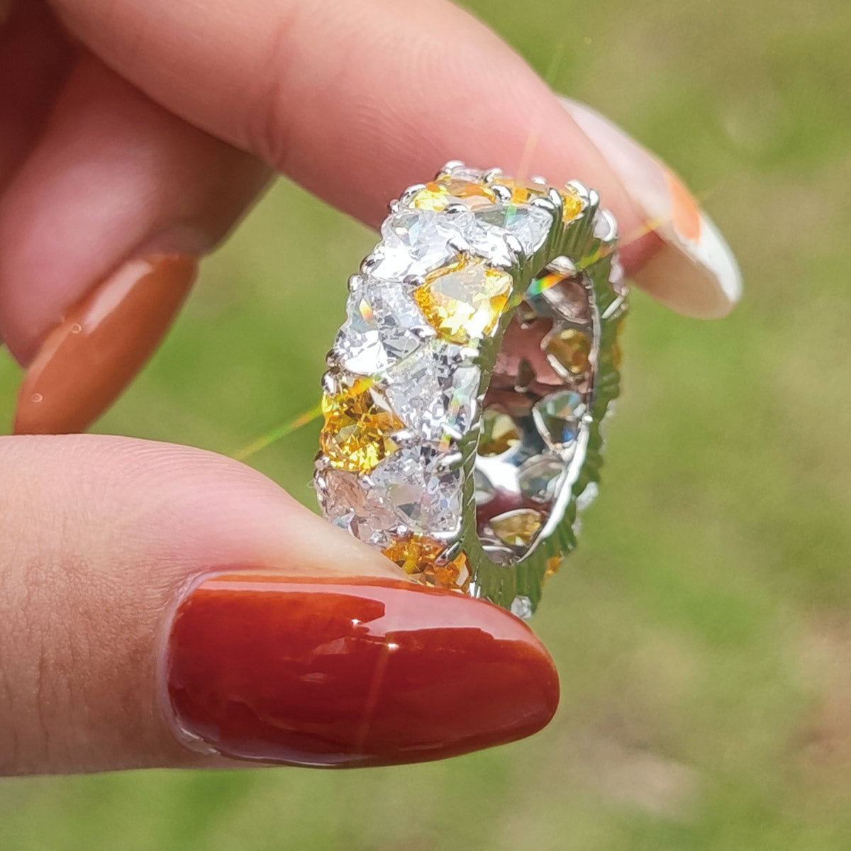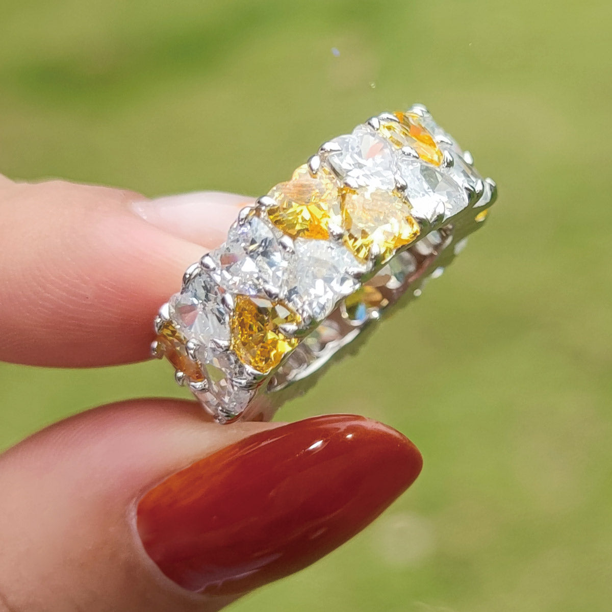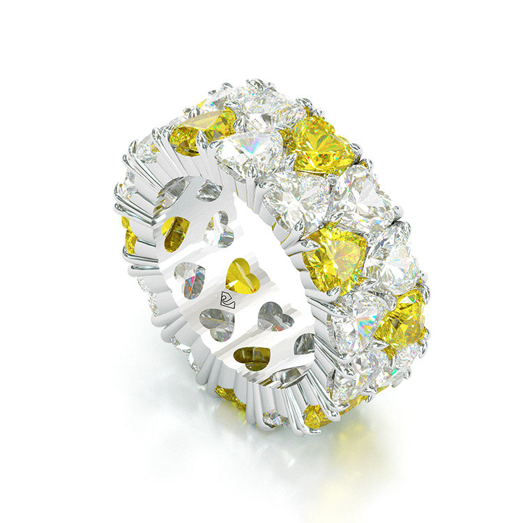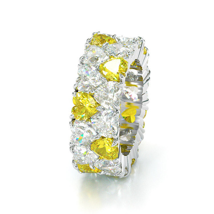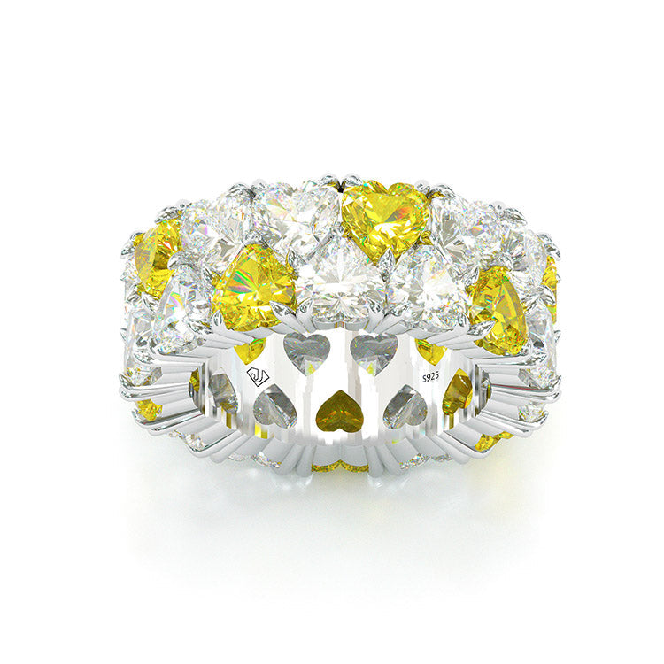 Jzora Heart Cut Sterling Silver Wedding Ring Eternity Women's Band